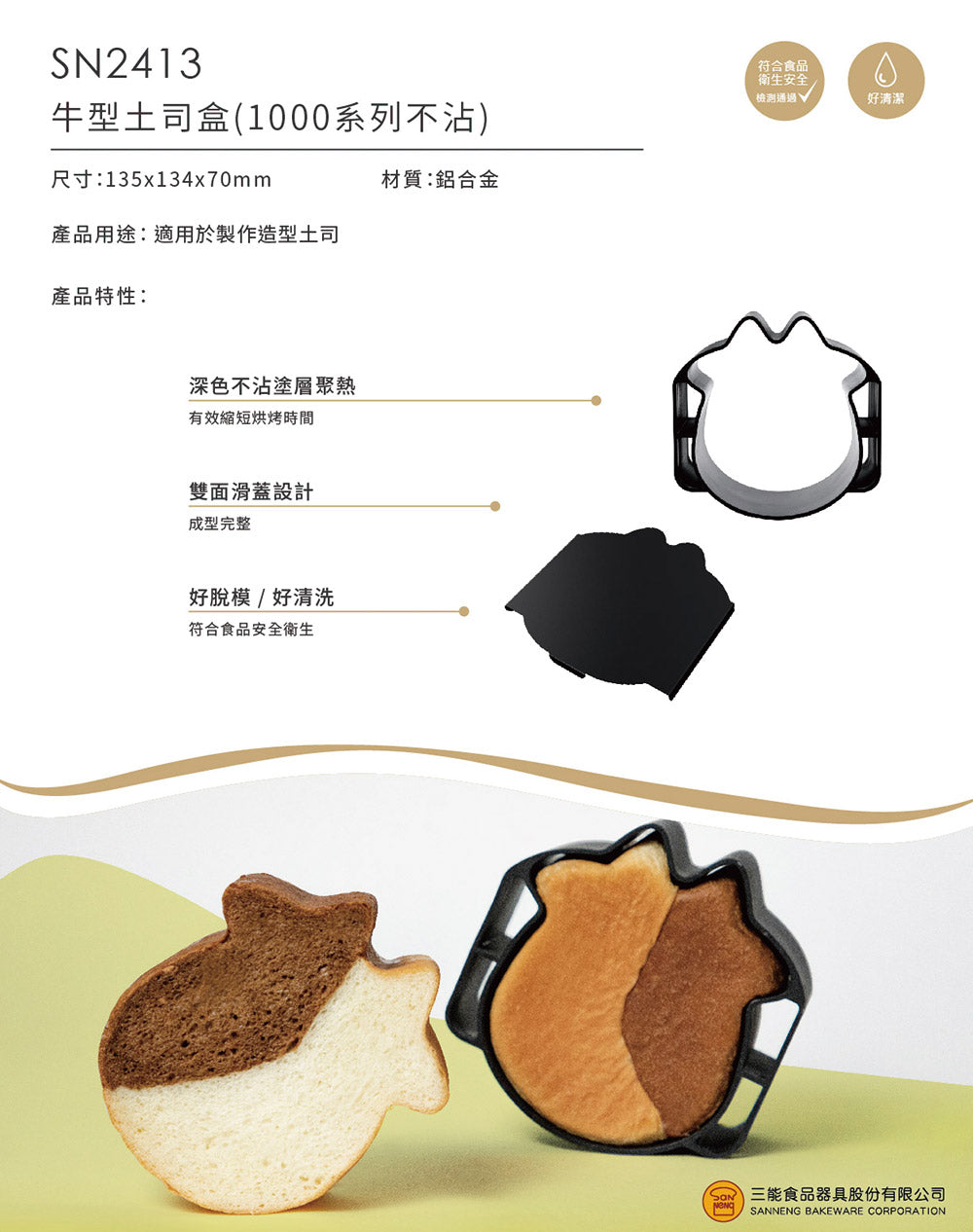 三能|牛型土司盒(1000系列不沾) SN2413