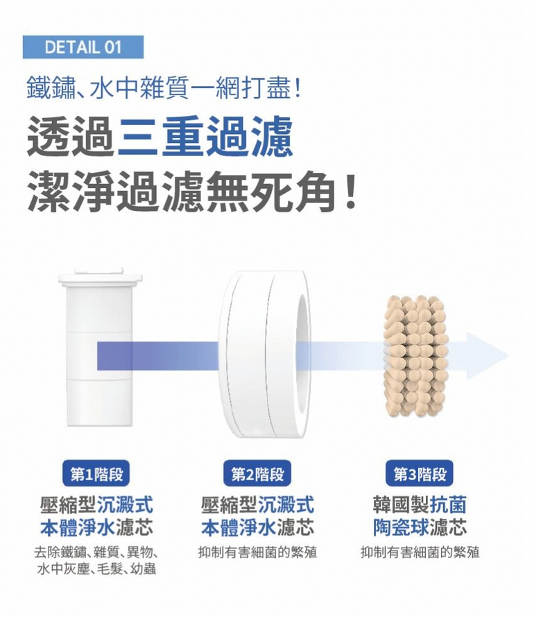 ■ 抑制細菌滋生,為您提供更衛生、更安全的沐浴用水。