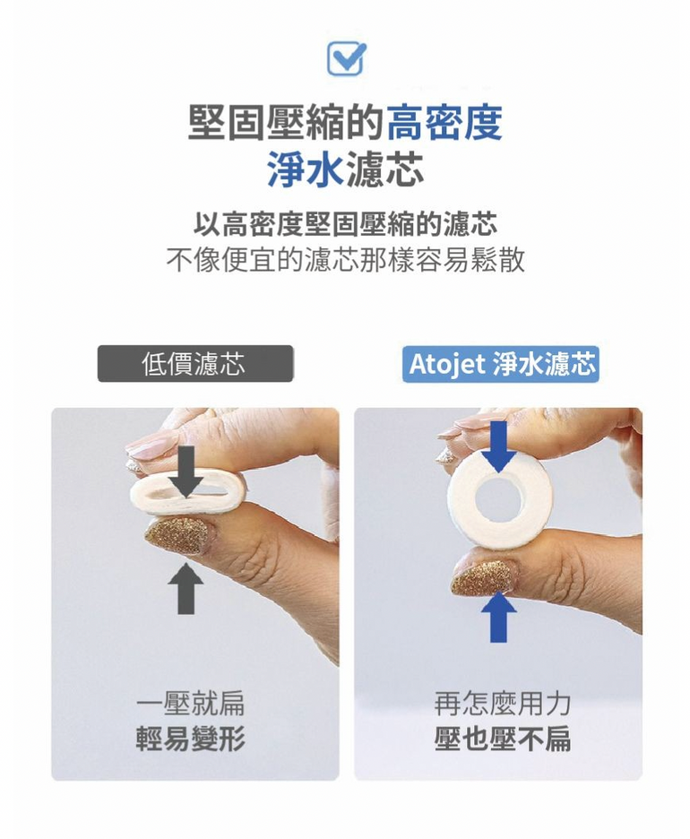 Atojet 旅行用迷你蓮蓬頭是您旅行、露營或出差的理想選擇。這款迷你蓮蓬頭輕巧便攜,讓您在任何地方都能享受乾淨的水源。內置過濾器有效去除水中的雜質和異味,提供更健康、更舒適的沐浴體驗。安裝簡單,適用於各種標準淋浴軟管,讓您隨時隨地都能輕鬆享受淨水。附帶收納袋,方便您隨身攜帶,讓您的旅途更加安心。