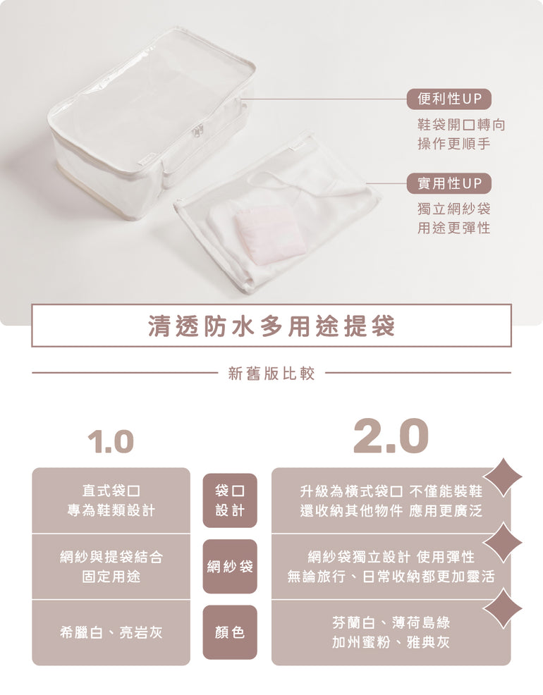 Suzzi|清透防水多用途提袋 X 網紗袋組合 4色可選