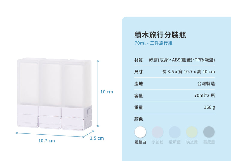 Suzzi|積木旅行分裝瓶 M 70ml - 三件旅行組(10色)