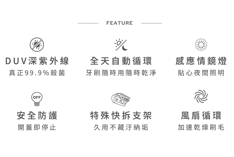 ✓ 高安全性:開蓋即停機制,防止紫外線外漏
