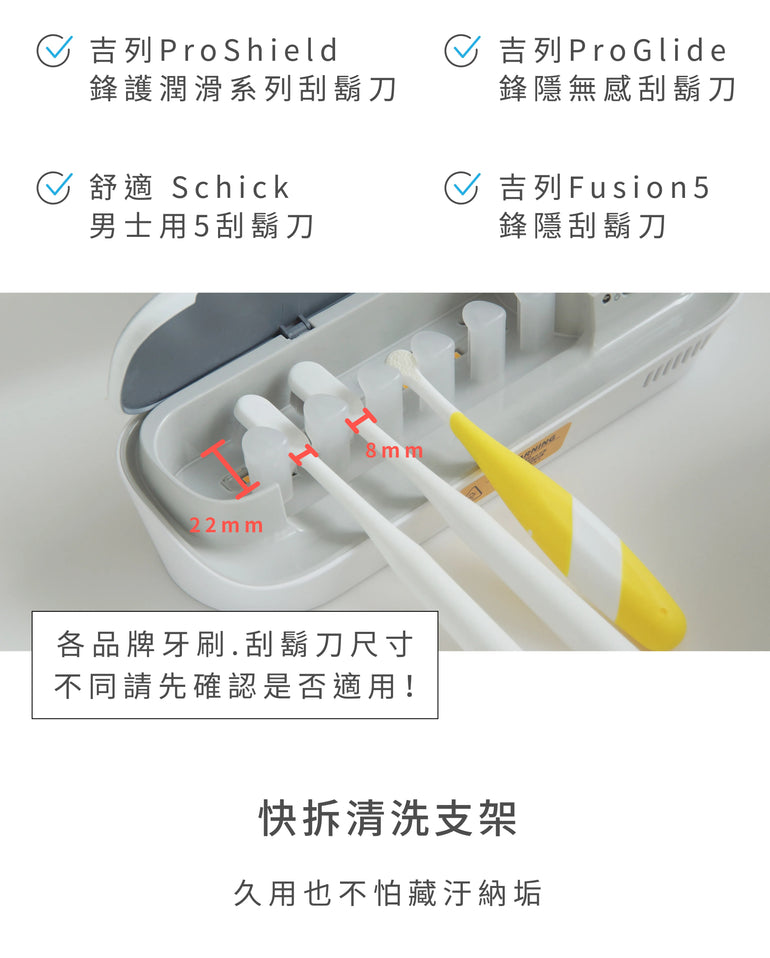 ✓ 可調式牙刷掛架:可調節支架,滿足全家大小需求