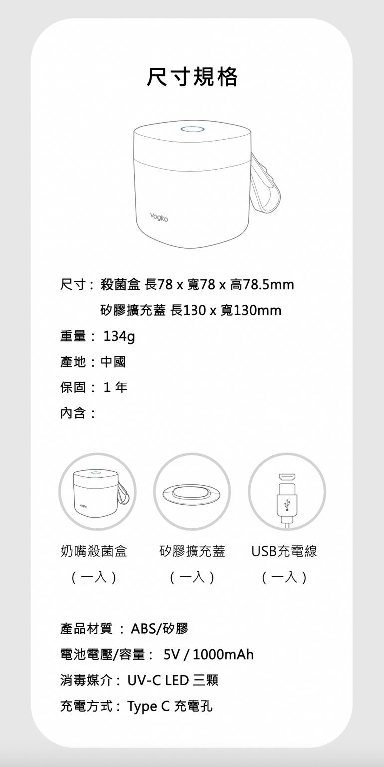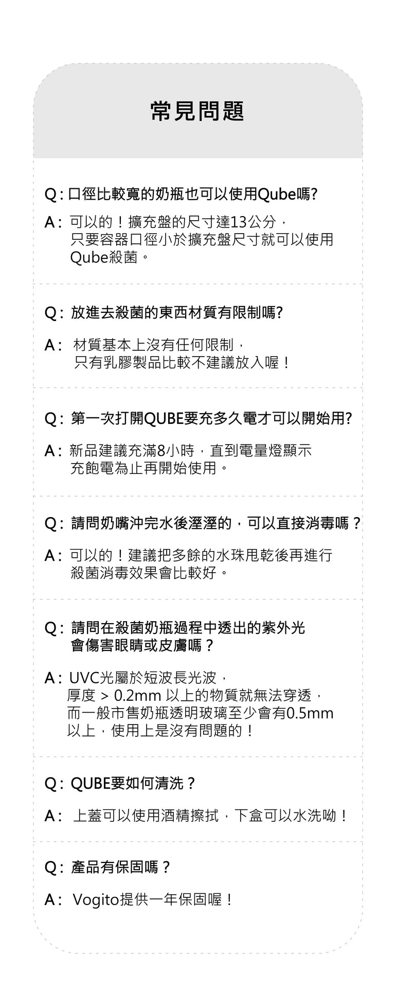 內容物:好日照Qube、矽膠擴充蓋、USB充電線、說明書