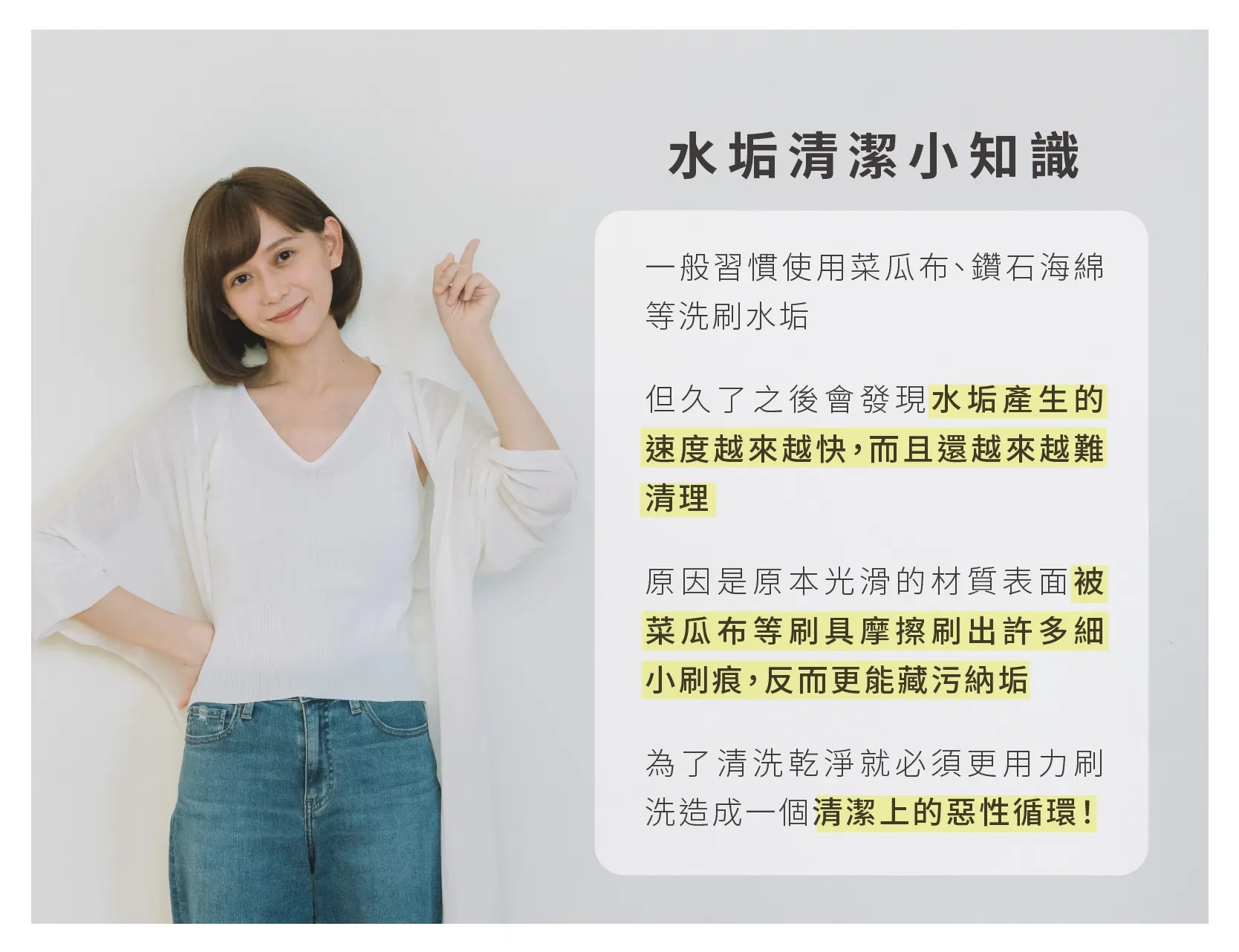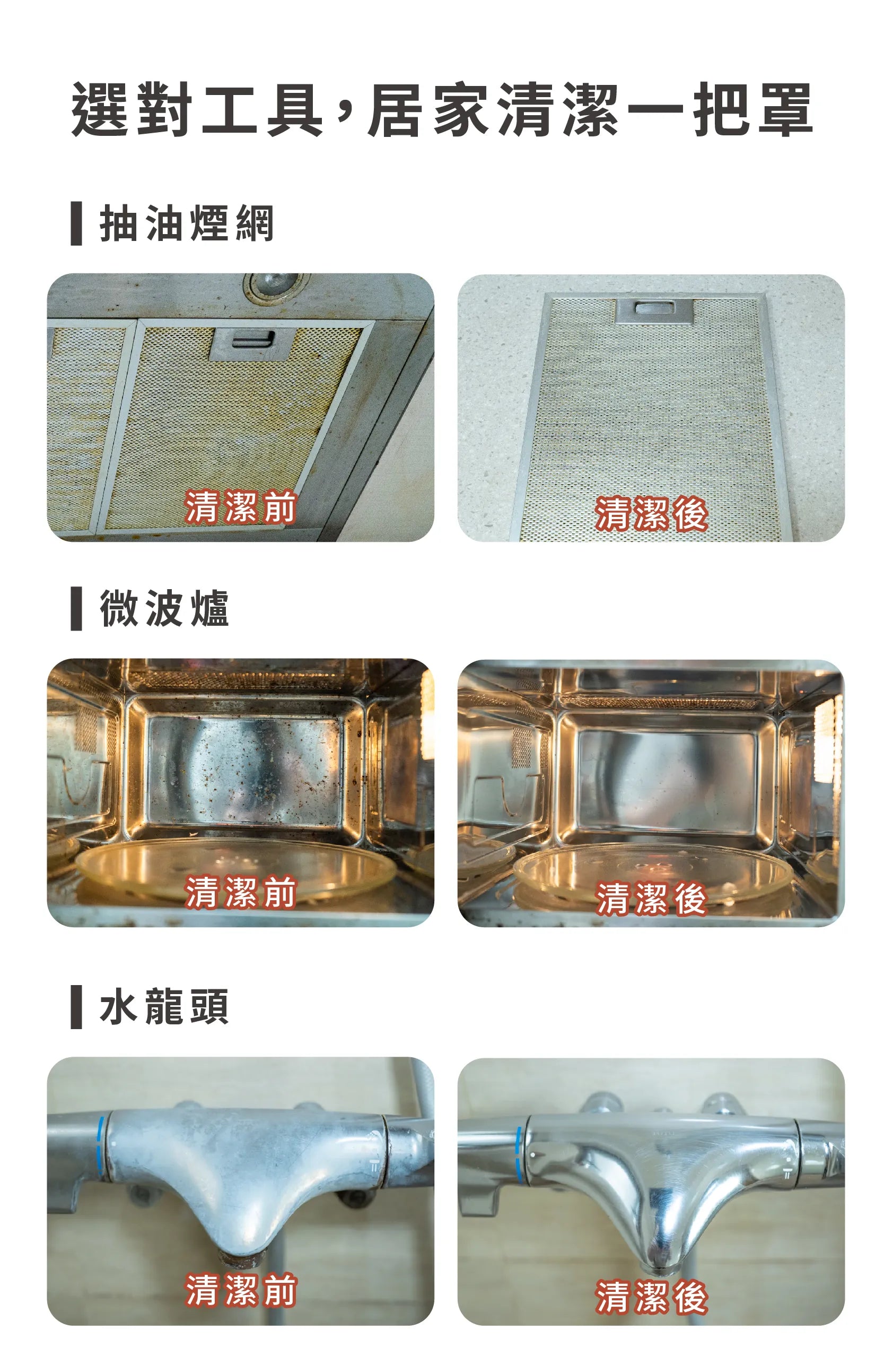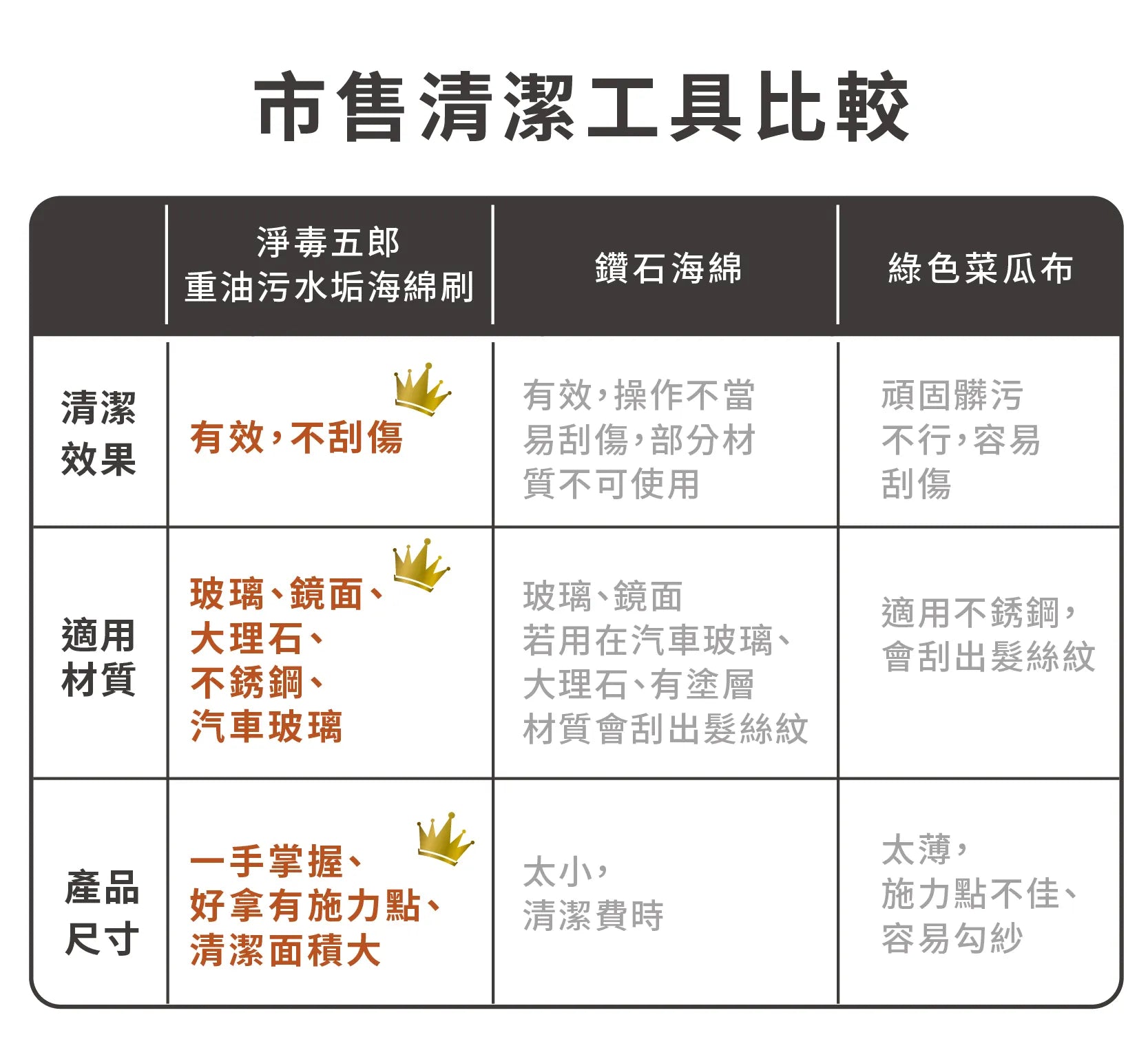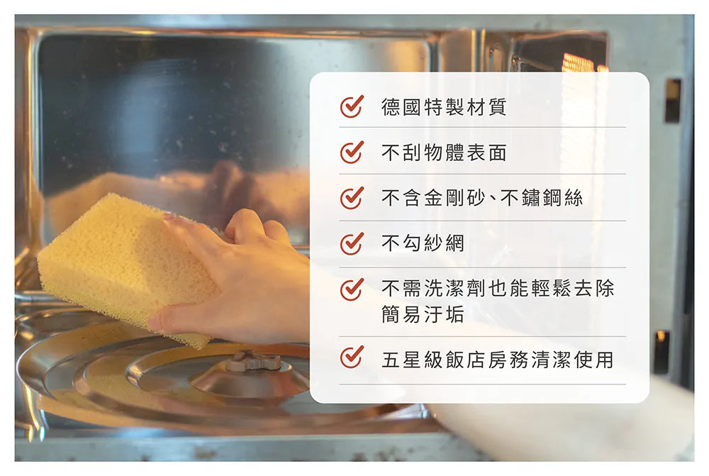 水垢及重油汙清潔皆適用,不沾清潔劑也能去除簡易污垢