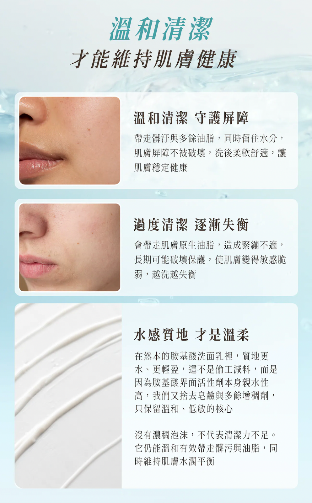 極致溫和潔淨,留下剛剛好的水潤與安穩。