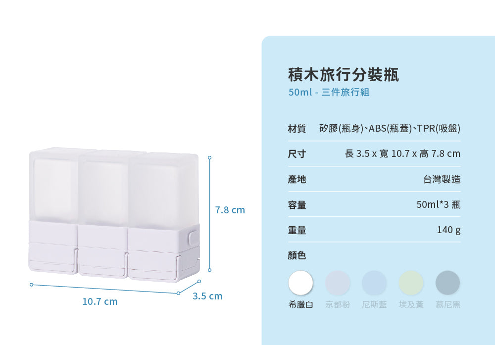 Suzzi|積木旅行分裝瓶 S 50ml - 三件旅行組(10色)