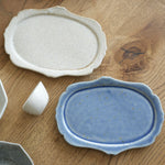 素色盤子的材質為半瓷器,一件一件手工製作而成。