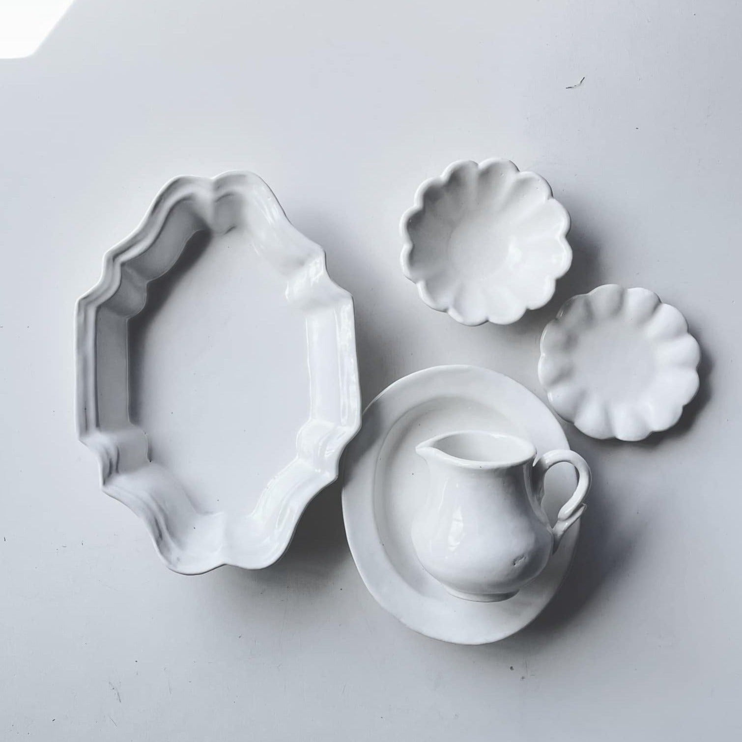 ヨシノヒトシ 白瓷花邊橢圓盤