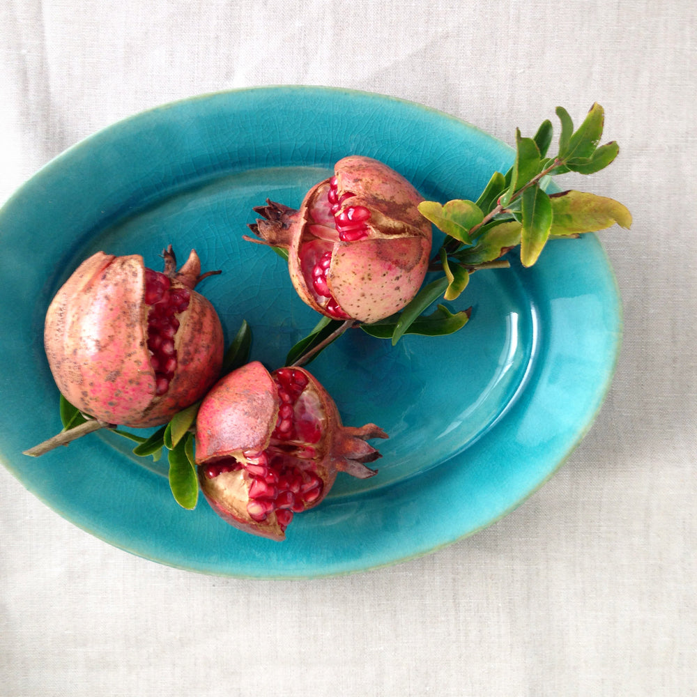 Awabi ware 岡本純一橢圓盤 M 土耳其藍
