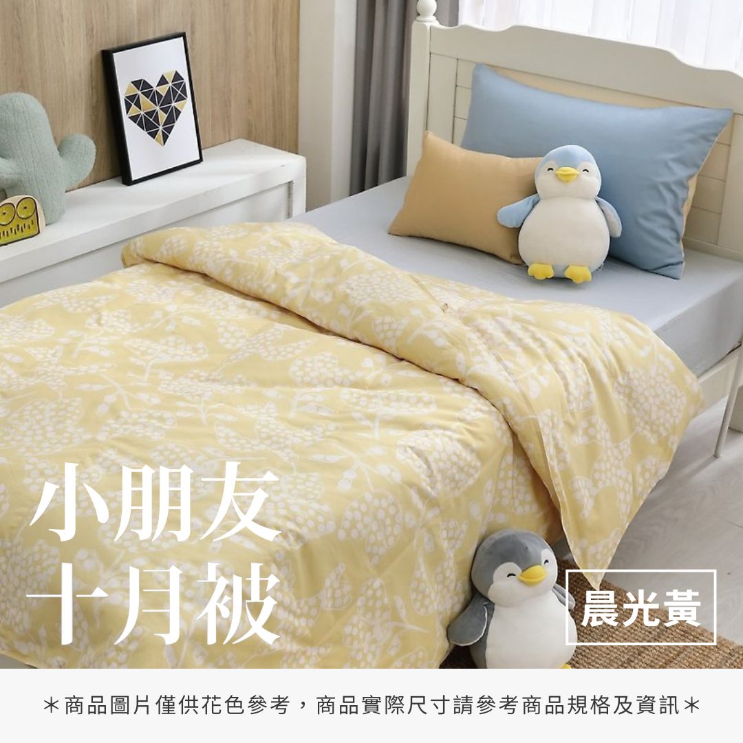 十月被適用於18℃~28℃,小朋友體溫較高,蓋上十月被,享受一整年的舒眠。