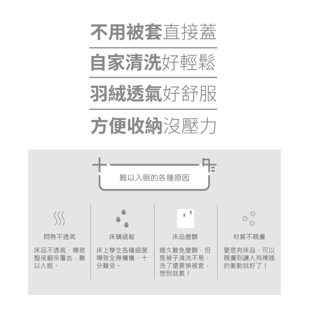 2.不須被套,可直接蓋。