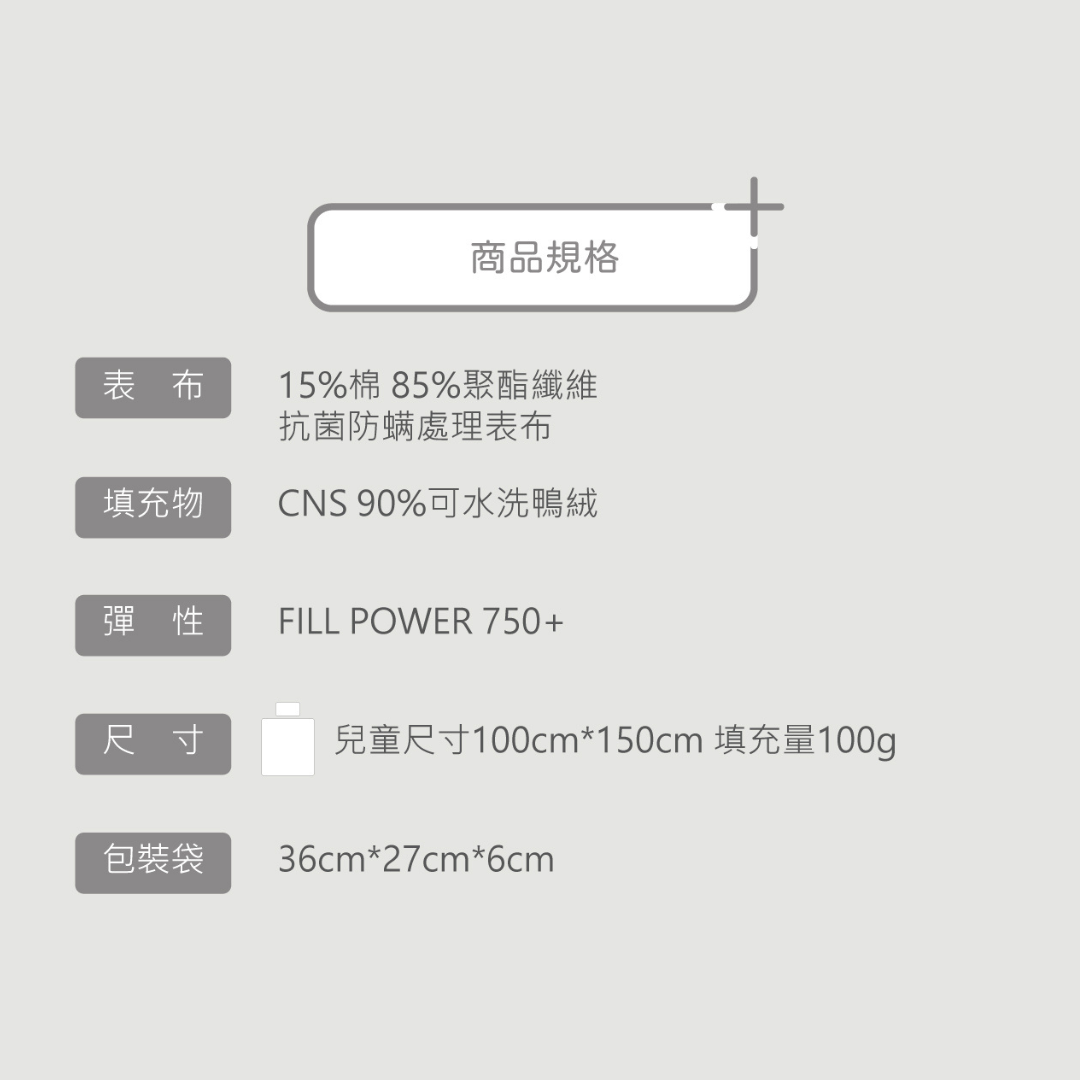 填充物採用台灣低過敏加工羽絨,不論大人小孩,在使用更加放心。