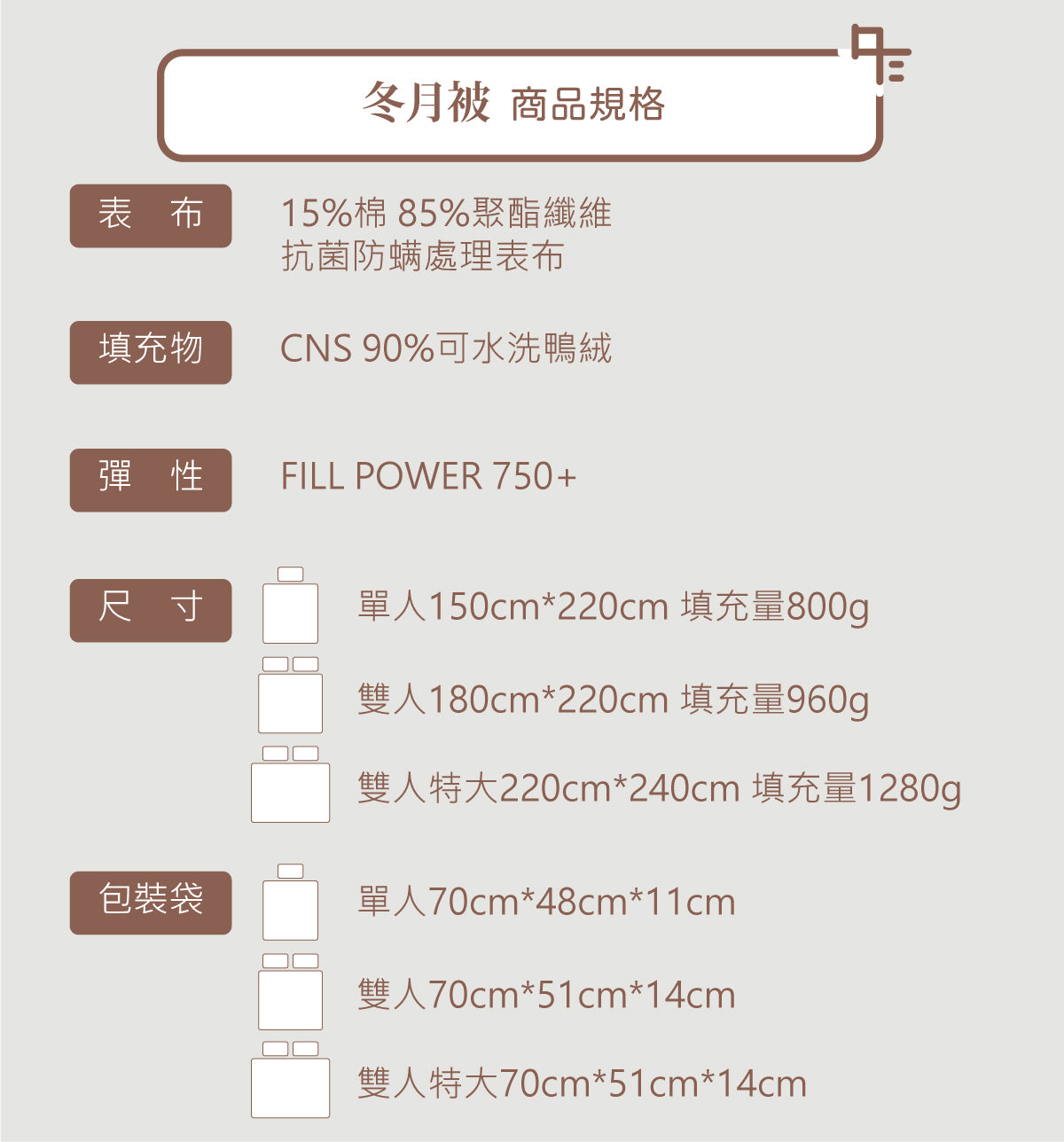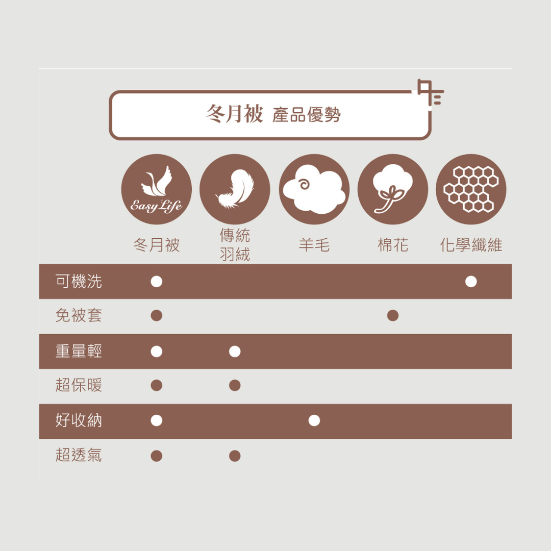 冬月被適用於 5℃~20℃ ,冬季使用超級保暖,讓您每天只想賴在被窩不出來。