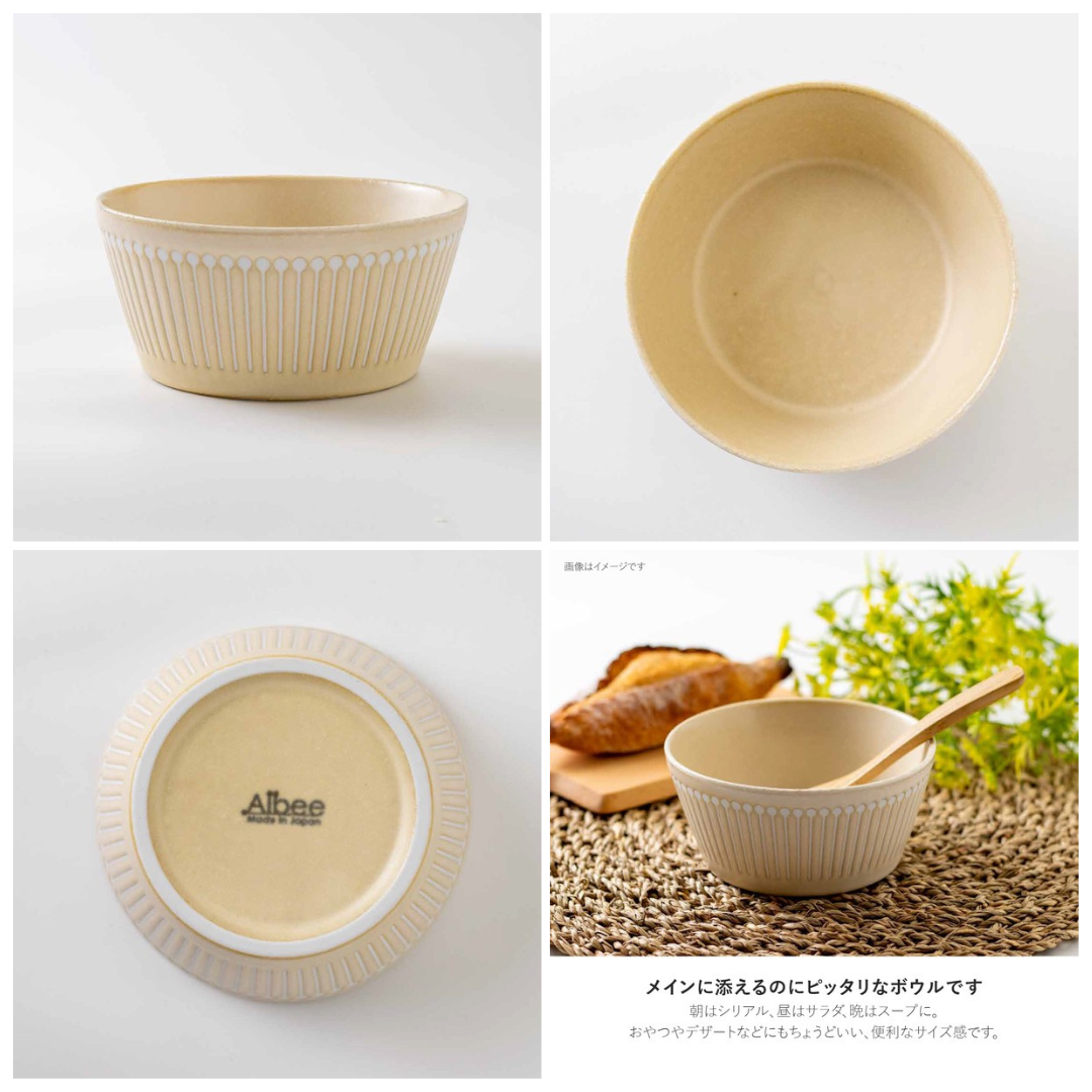 日本美濃燒 Albee 直線刻紋輕量平底圓碗 (S/M) 共三色