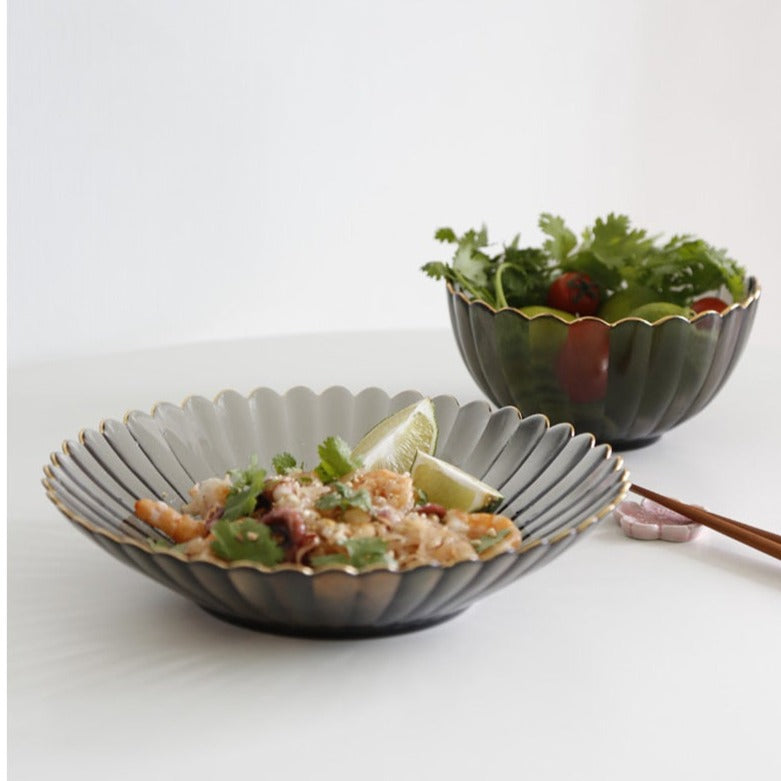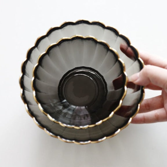 花金邊皺摺玻璃碗 (S-M)
