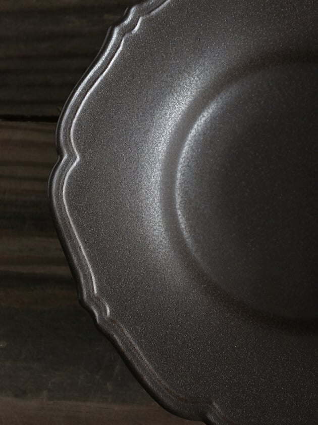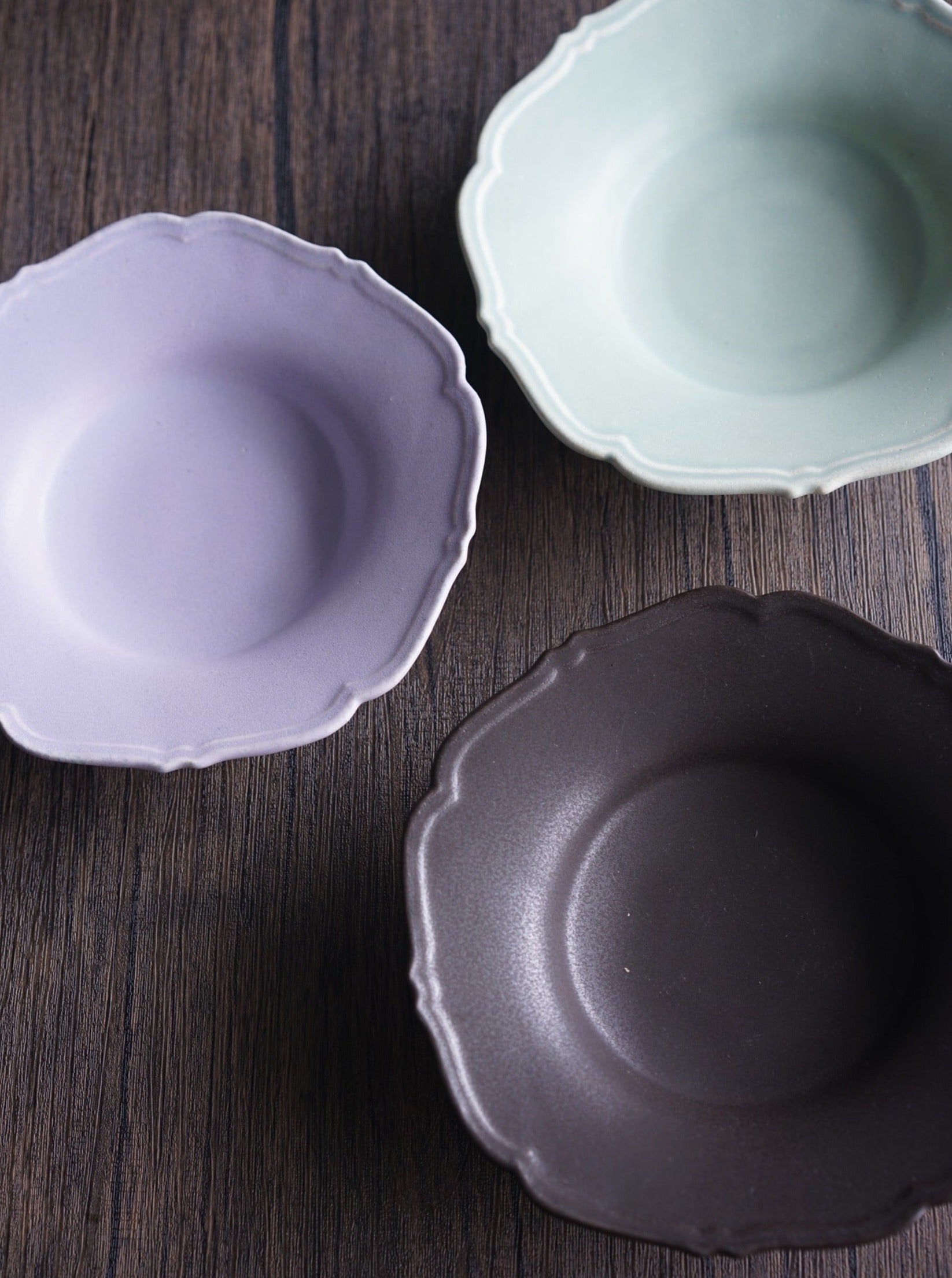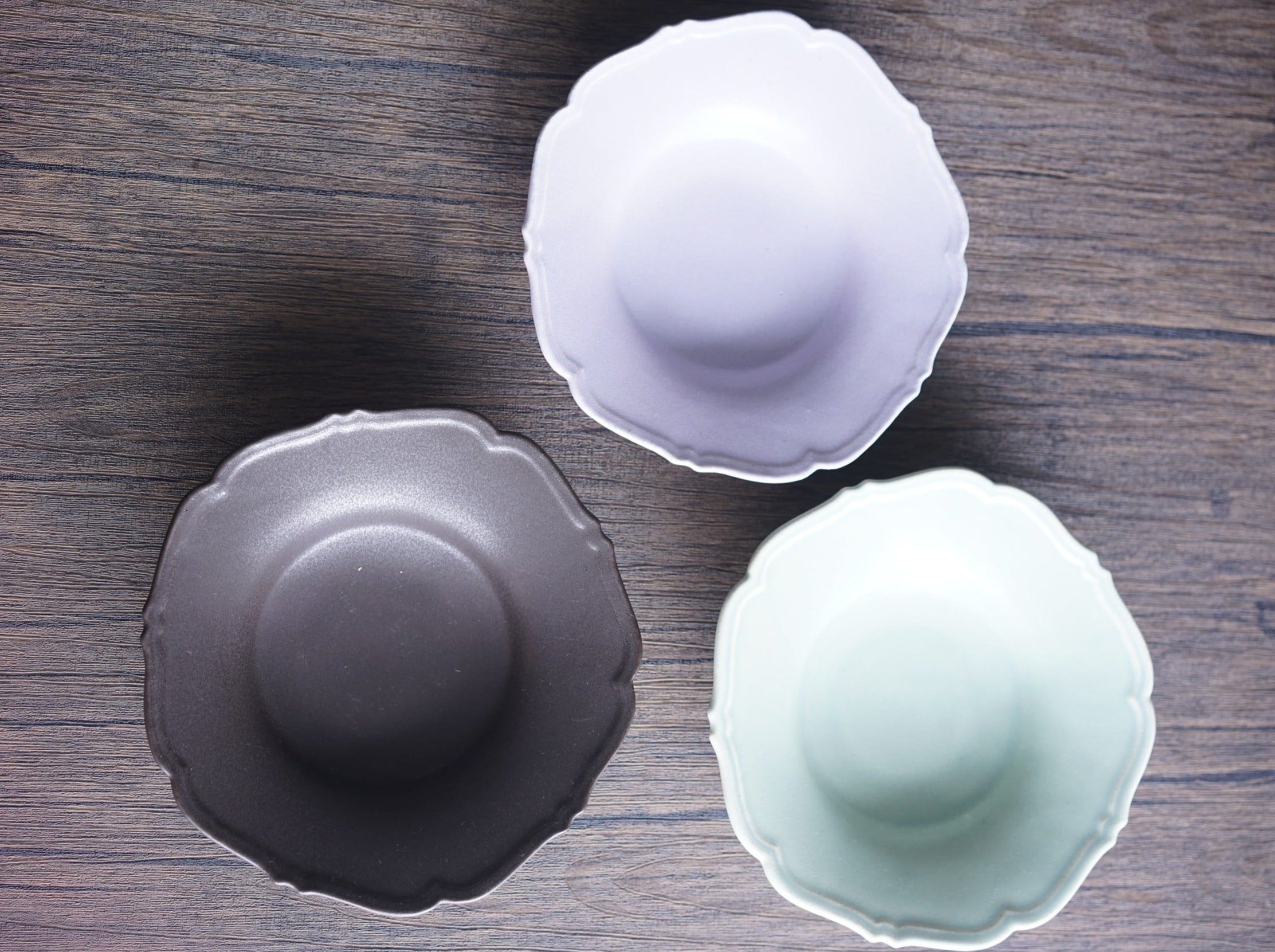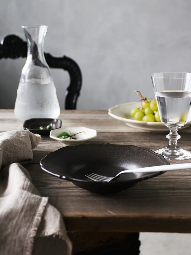 此款器皿是中央有凹陷的碗,非常適合用作湯碗。根據搭配的南瓜、洋芋和胡蘿蔔等食材來選擇器皿顏色,所呈現出的料理組合也很有趣。