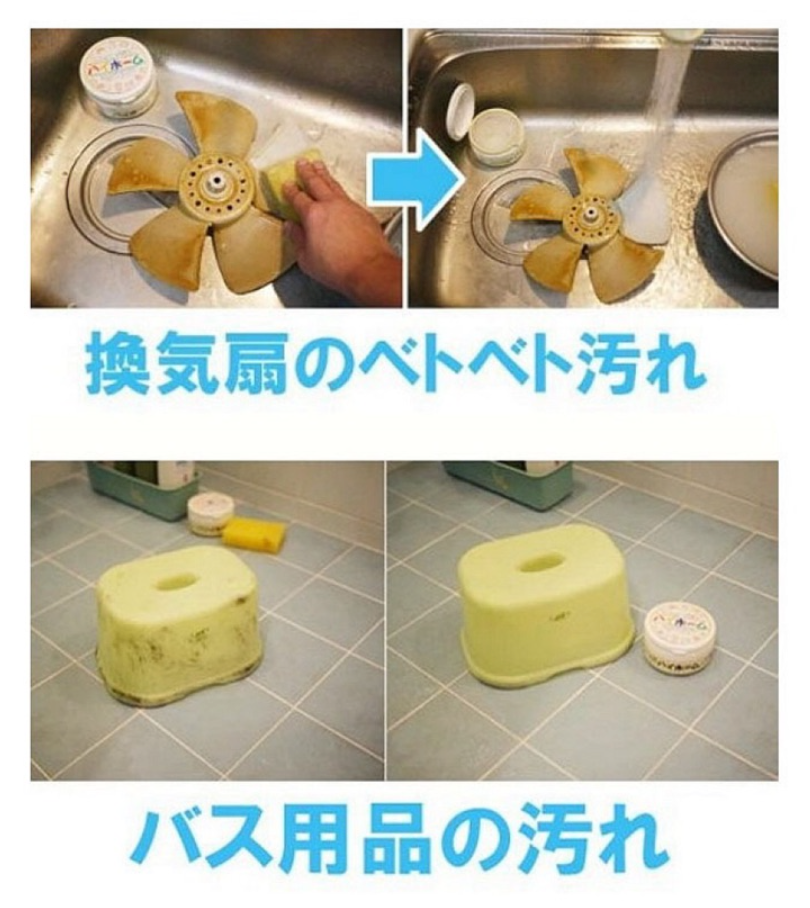 1. 在清潔海棉上沾一點湯之花萬用膏在髒污處搓揉