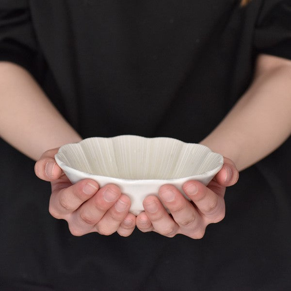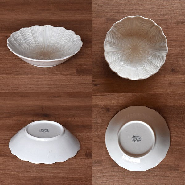 很容易融入日式和西式的風格。大膽安排了日本傳統圖案「十草圖案」,為餐桌增添時尚度。是可以感受到美濃燒溫暖的一系列。共有3種顏色,柔和的色彩不會過於浮誇,更能凸顯其他餐具或料理。是在任何季節都能好好善加利用的顏色。有著看起來像菊花的外觀,與和緩曲線邊緣的容器。是盛裝料理時能夠成為映照出重點的一款器皿。