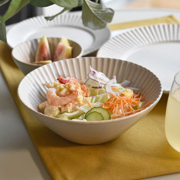 以華麗為靈感的可愛造型扇形盤!背面刻有鑄件獨有的可愛網格!在淡柔和的色調中,像珍珠一樣閃耀的結晶為其特色!霧面系的釉料呈現出沈穩的色澤!