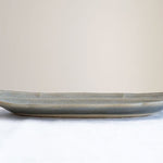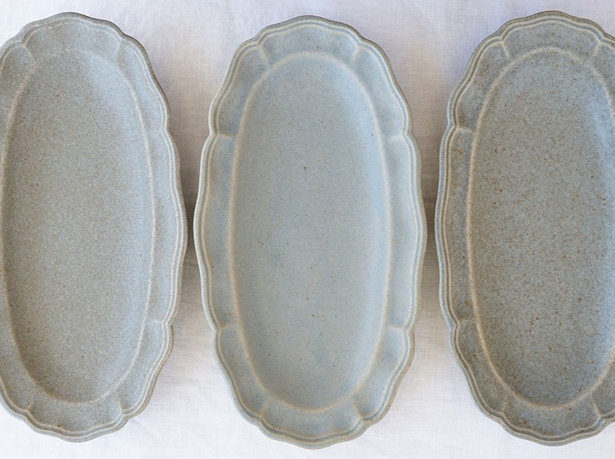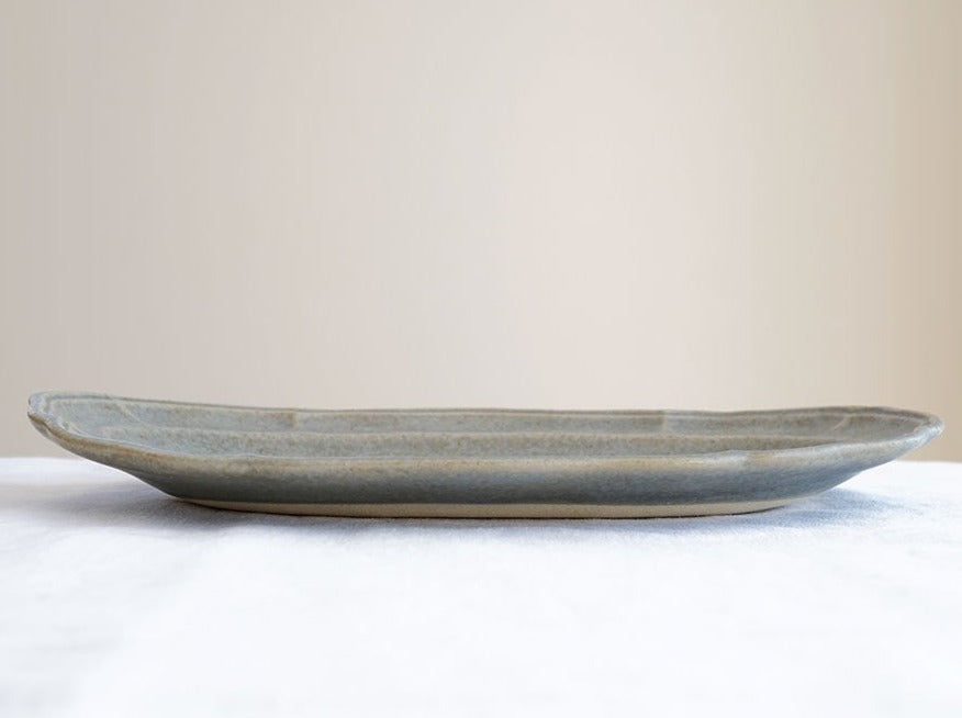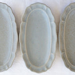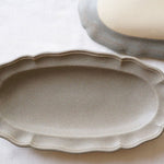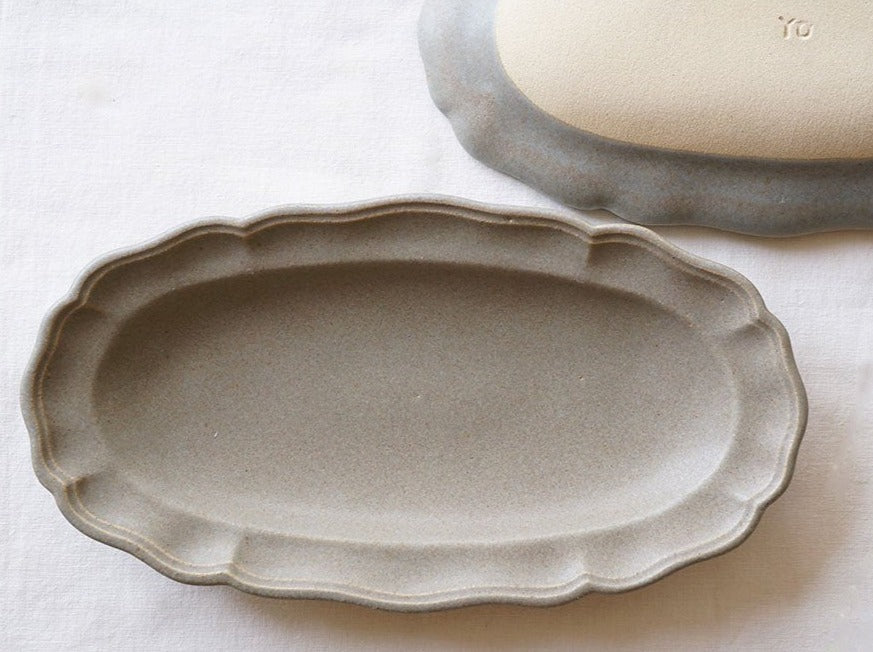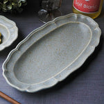 日本益子燒吉澤窯深米灰色花邊長橢圓盤