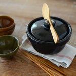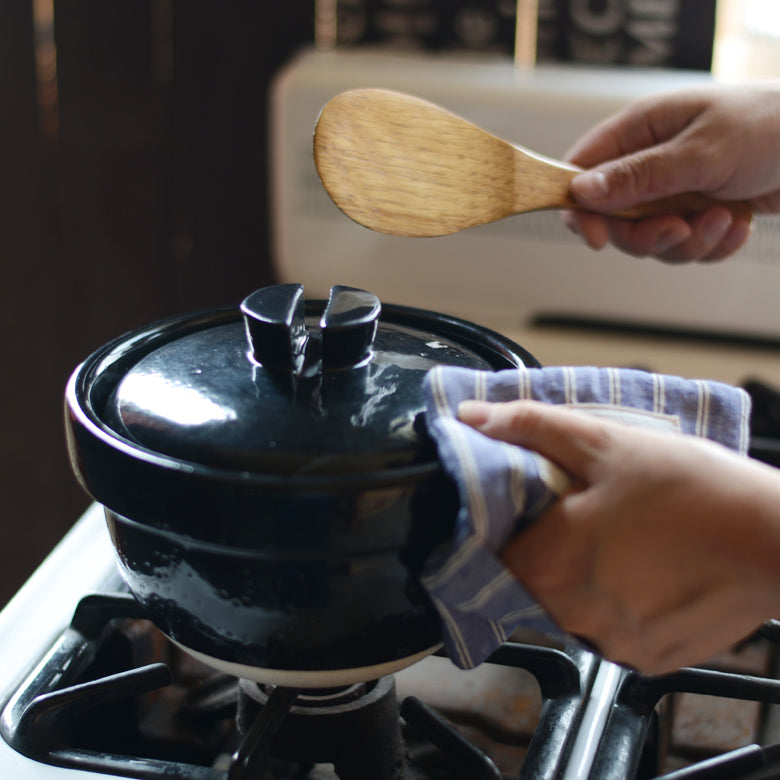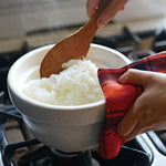 光滑的白色和黑色釉料讓剛煮好的米飯看起來很美味。