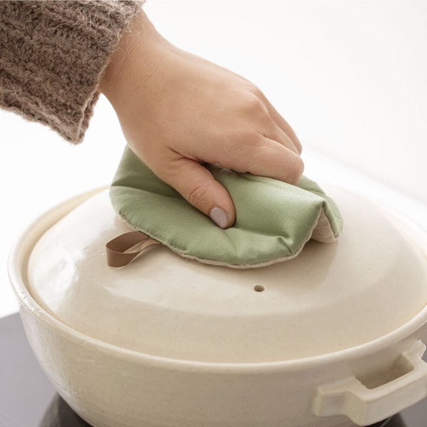 圓形鍋子隔熱墊中間有特別設計縫線,非常好拿取鍋蓋,也可以就這樣直接當作隔熱墊使用。