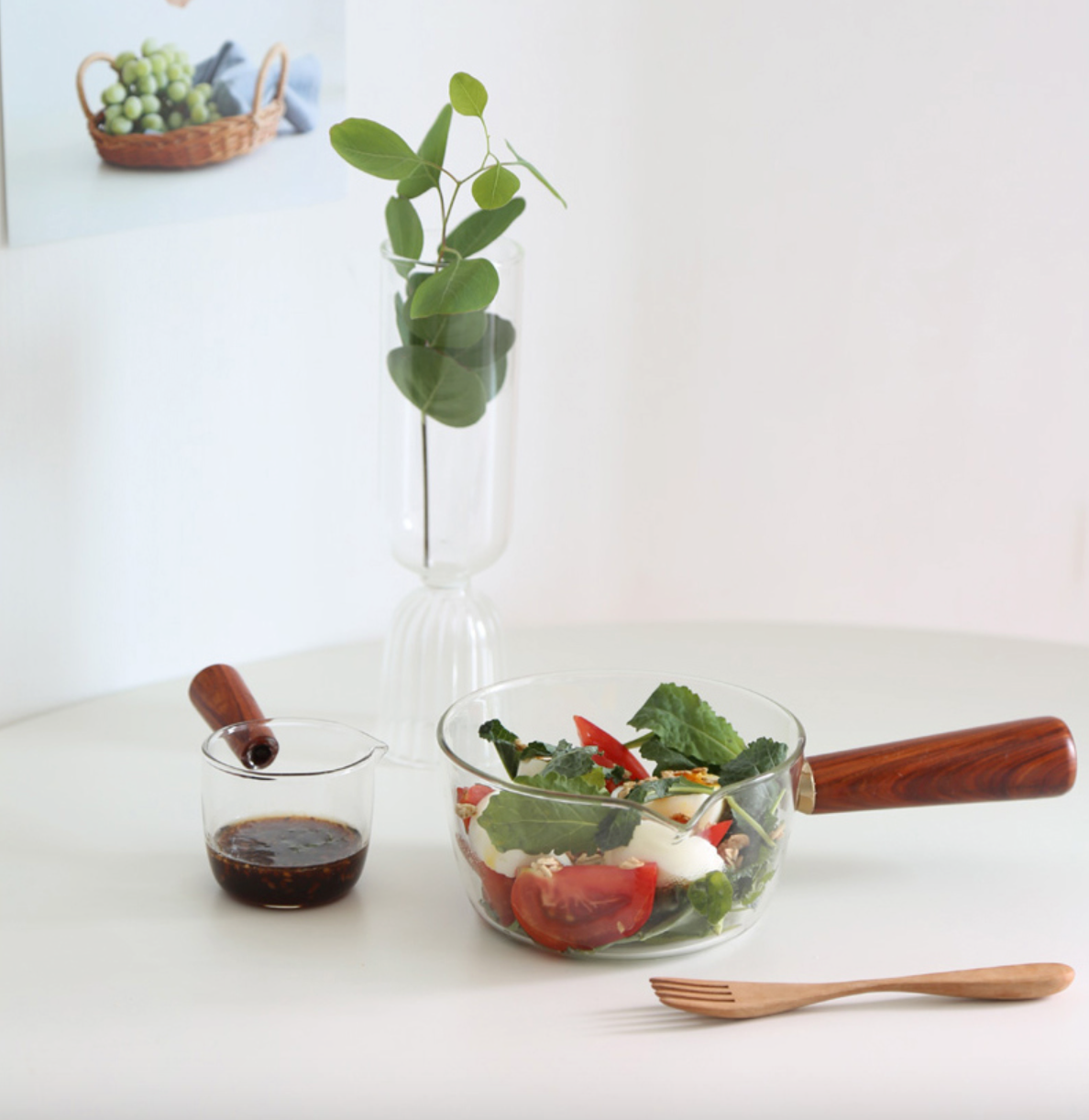 耐熱玻璃材質搭配質感木柄,不燙手且手感佳,在使用上不管是盛裝濃縮咖啡或醬汁都非常方便!