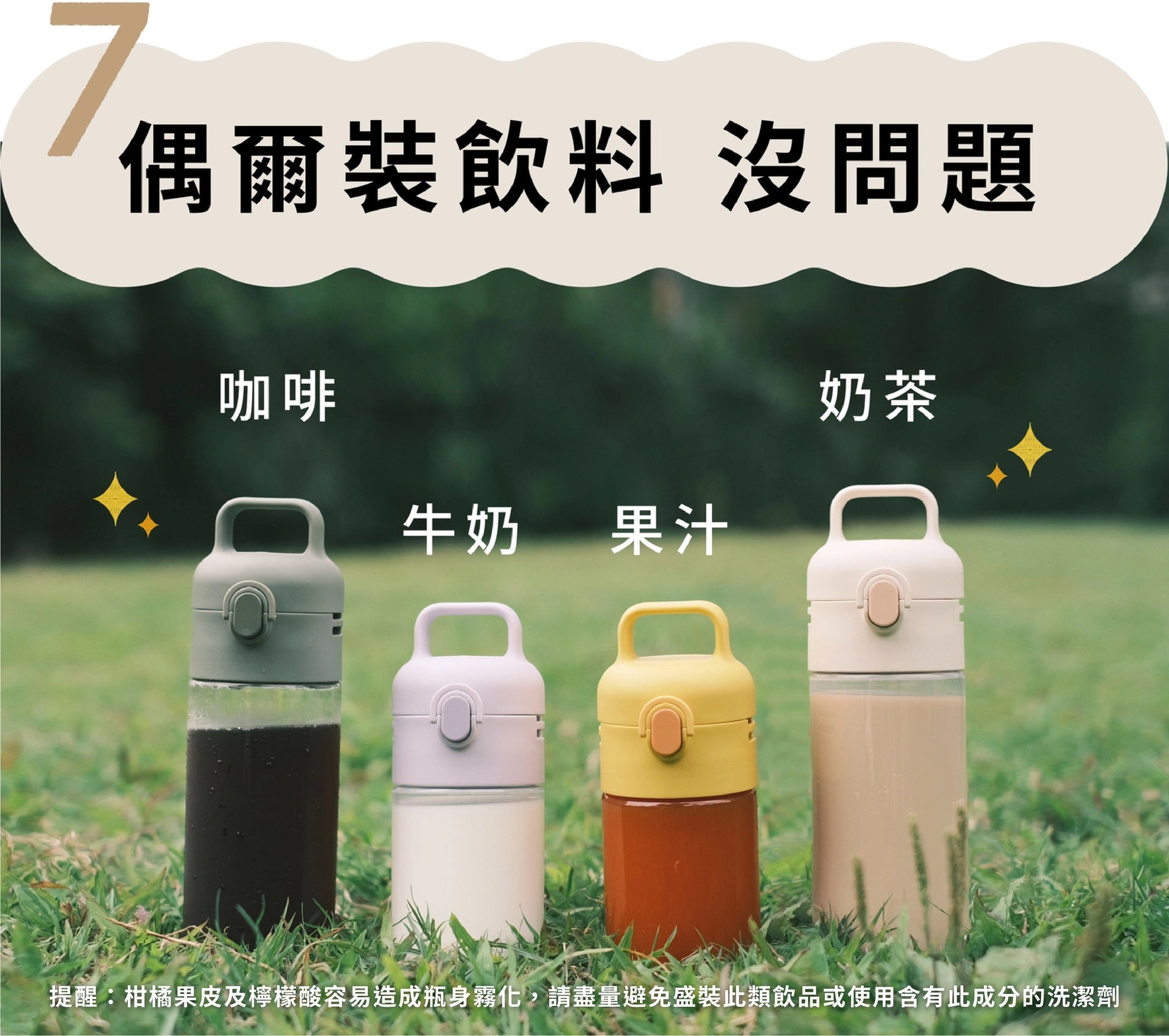 • 使用添加檸檬、柑橘等果酸成份之清潔劑可能造成瓶身材質霧化
