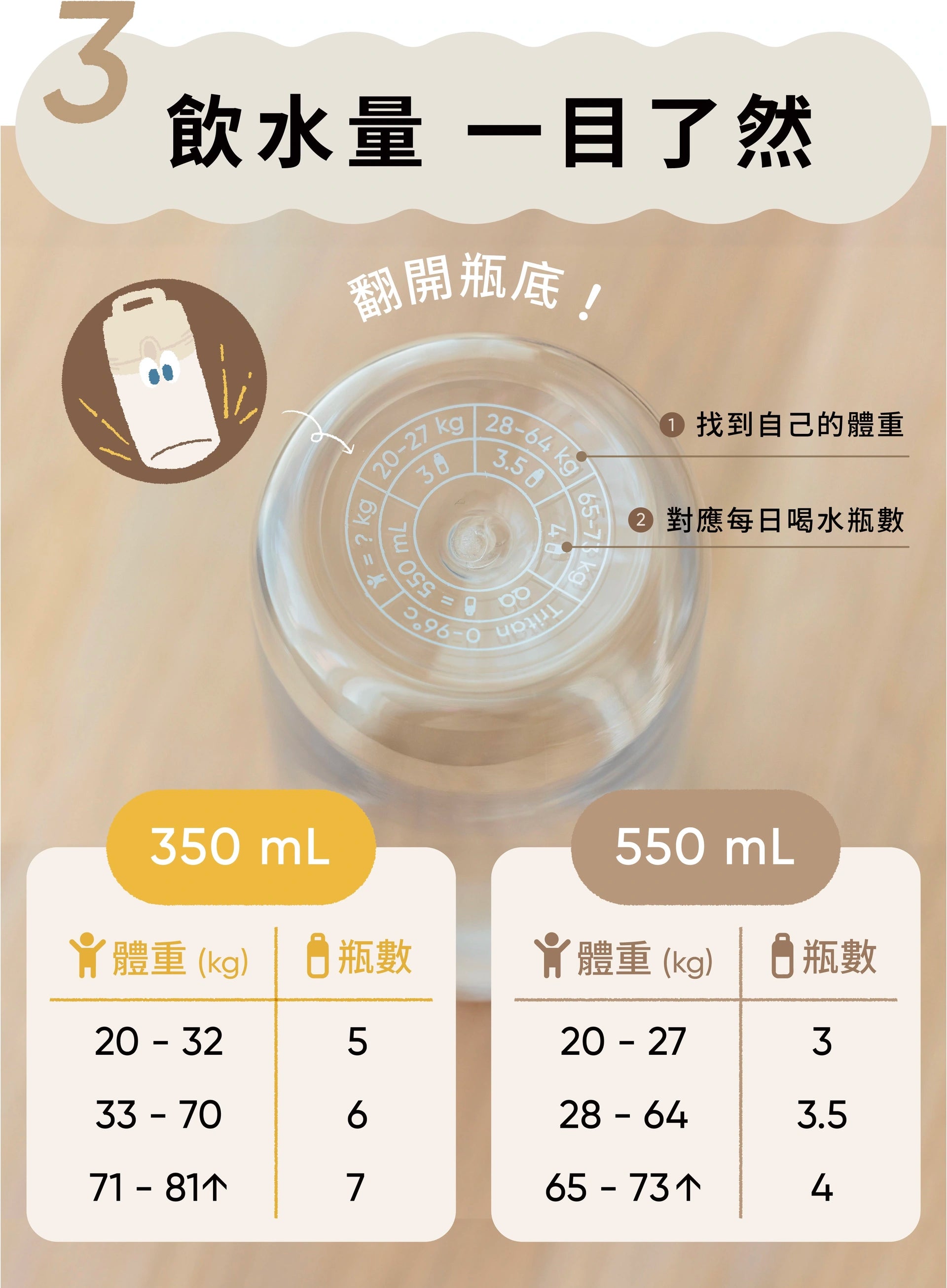 • 冷水瓶底:飲水量對照表喝下每天份健康
