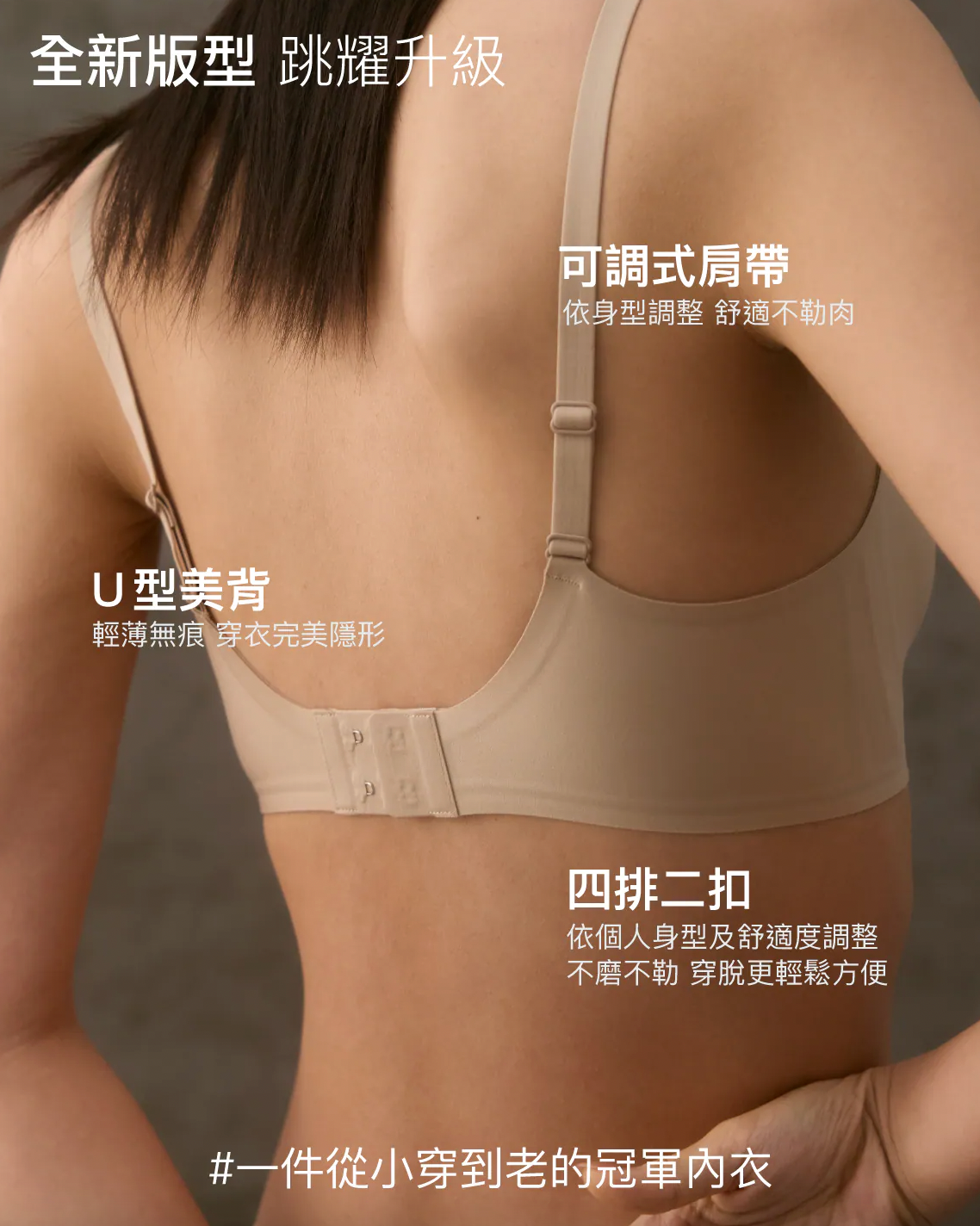 這次,我們用更細膩的結構設計,讓胸型自然圓潤、線條飽滿,擁有無痕的同時,讓胸型更加立體柔和。