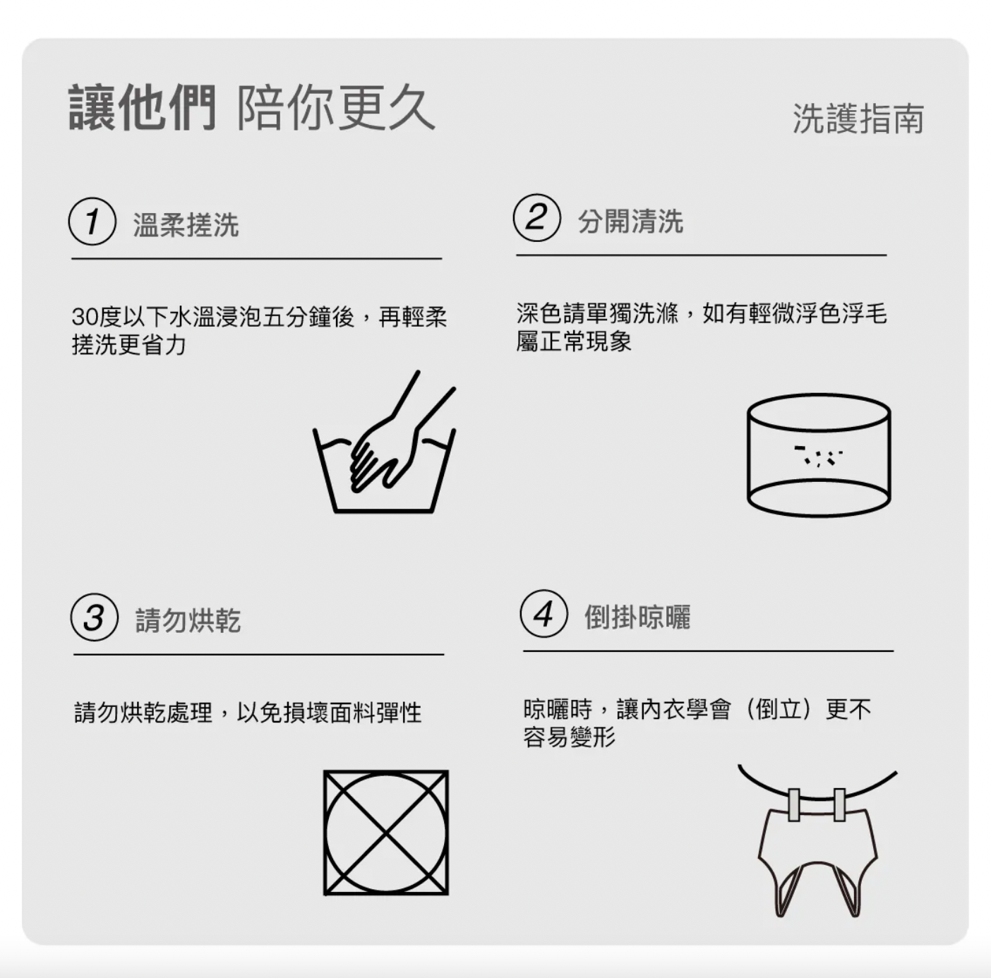 ▪️ 深色內衣請勿與淺色內衣一同清洗,若因此有染色問題恕不受理
