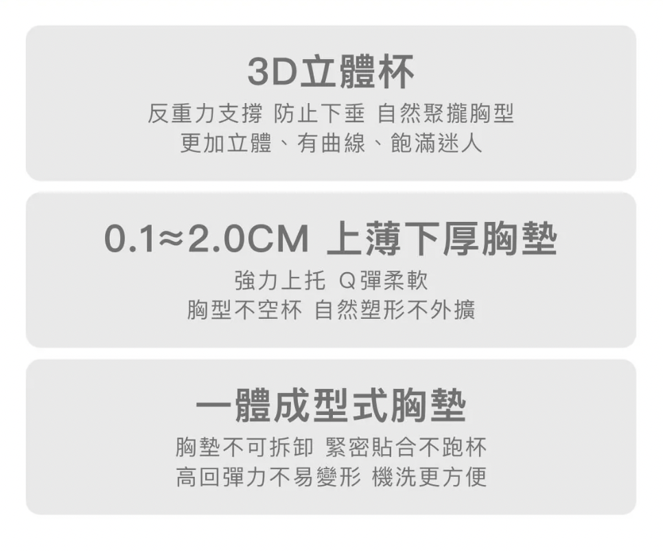同時提供反重力支撐,讓你的胸型更加立體、曲線更加迷人。