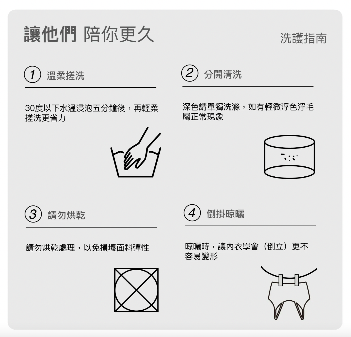 ▪️ 深色內衣請勿與淺色內衣一同清洗,若因此有染色問題恕不受理