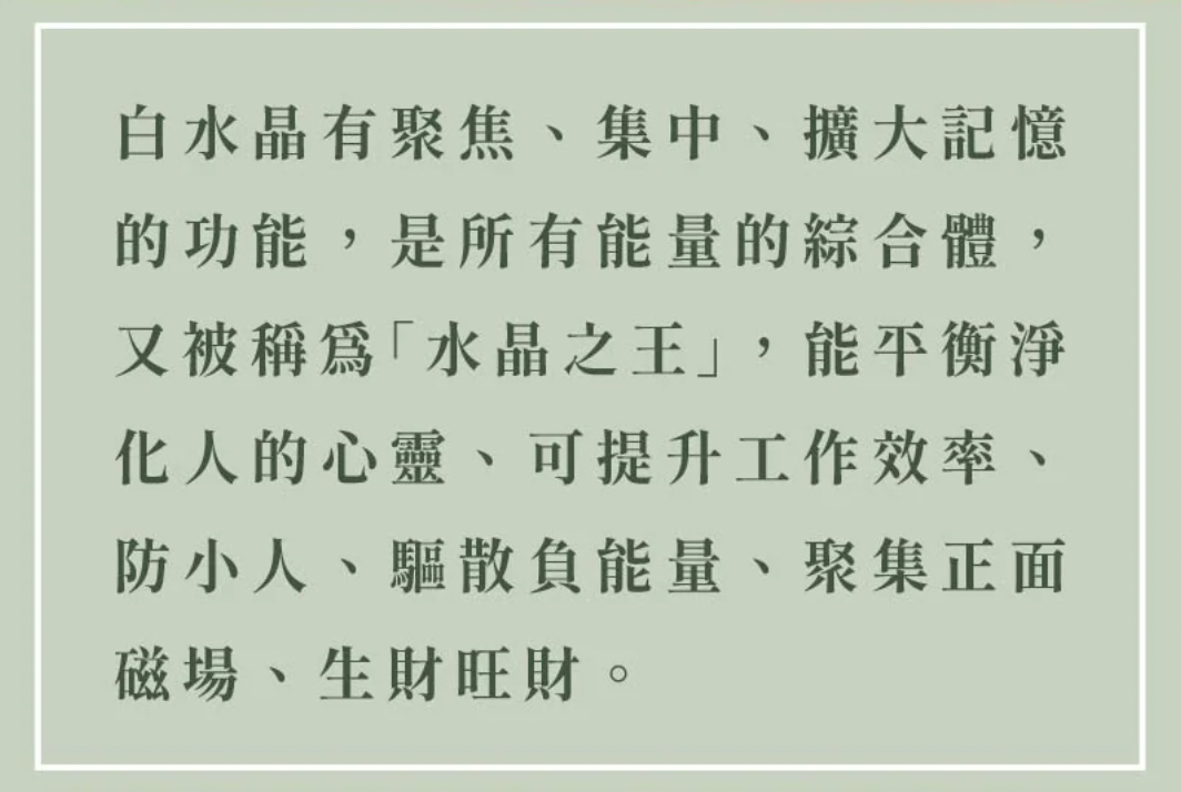 白水晶|記憶X生財 聚焦、集中、擴大記憶的功能,是所有能量的綜合體。