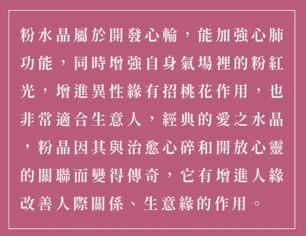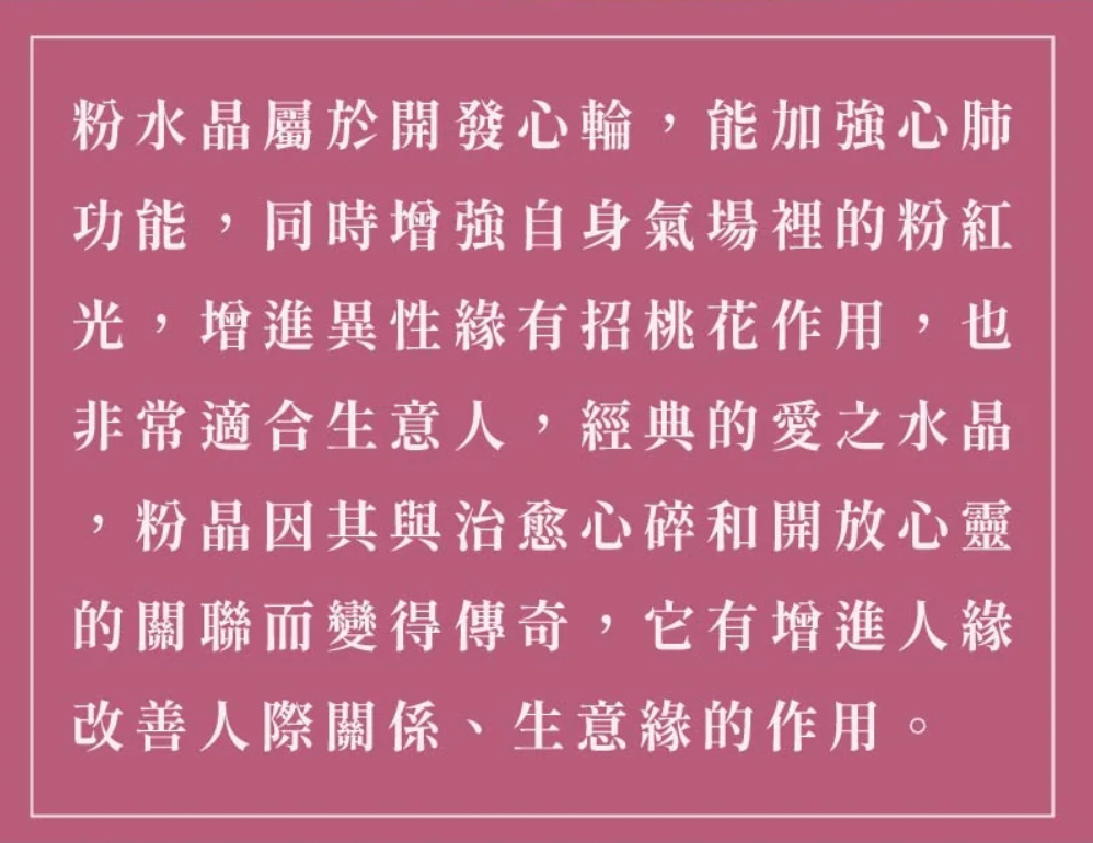 粉水晶|桃花X人緣 提升魅力,幫助愛情運勢,增加桃花運和人緣。