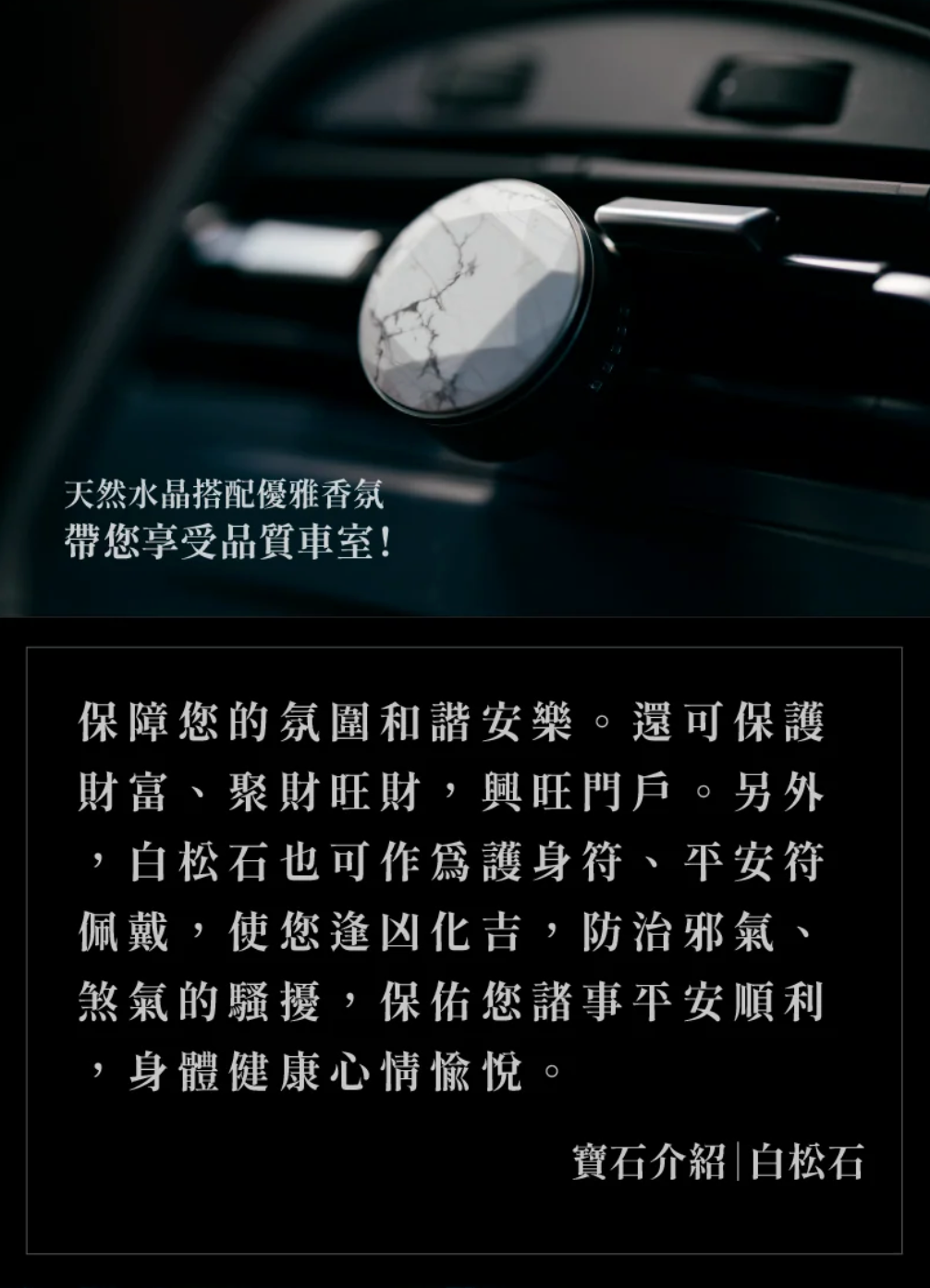 有種人靠近就能聞到身上專屬的味道,有些車坐上就能感覺到魅力,讓水晶能量與專屬香氣,幫您的愛車精品裝潢!