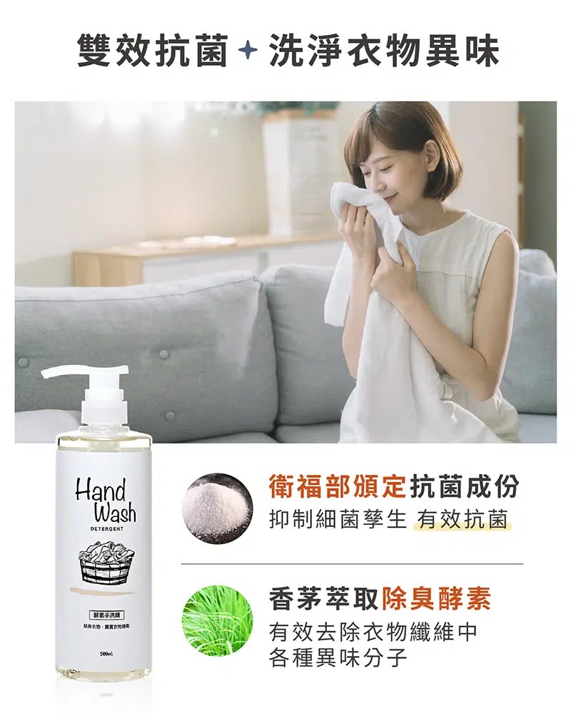 手洗衣服不怕雙手刺激,酵素手洗精高效除臭去污漬