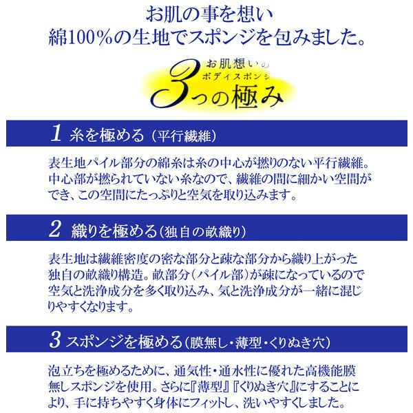 100% 純棉身體海綿,對嬰兒溫和,抑制皮膚刺激。
