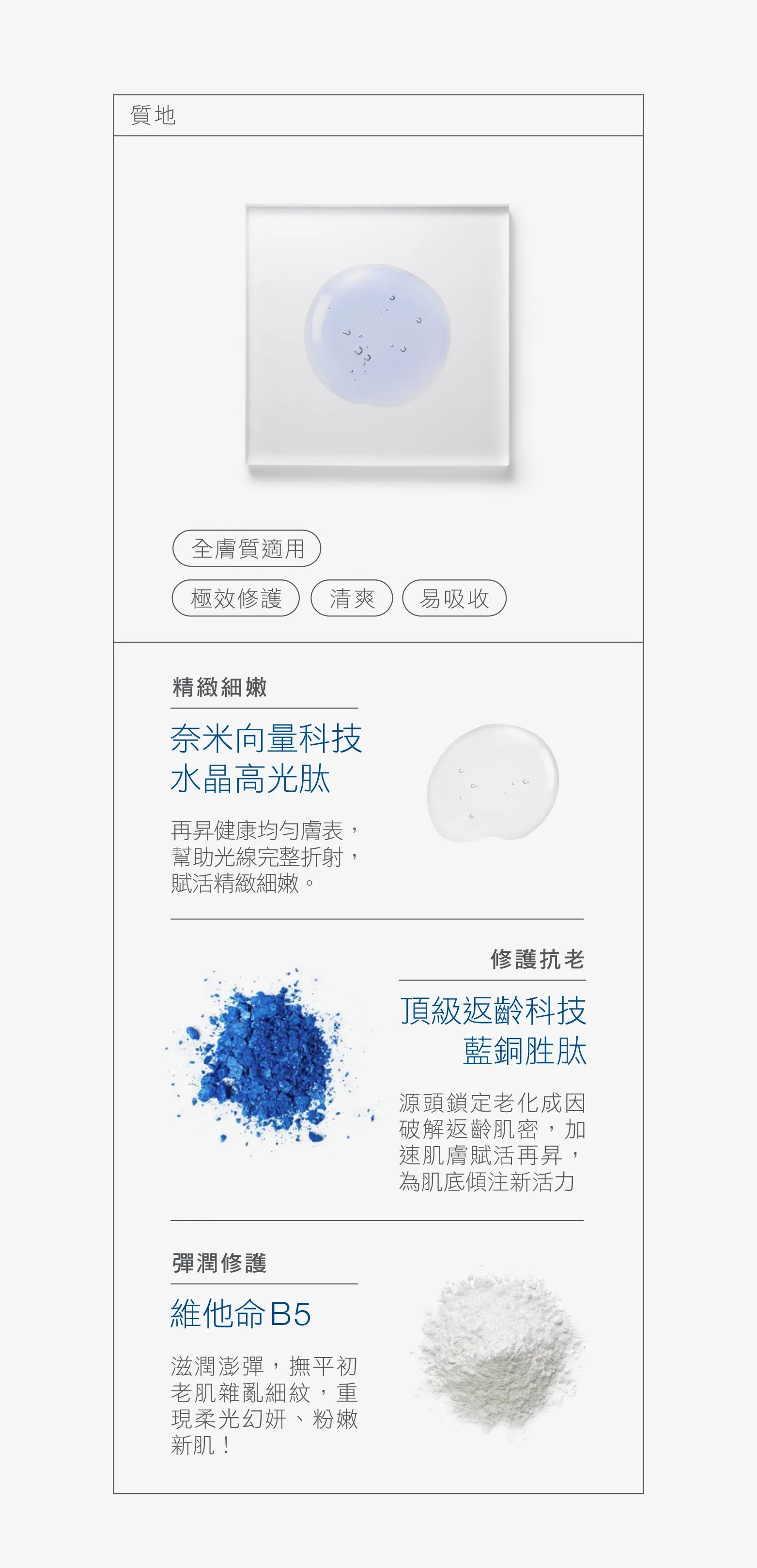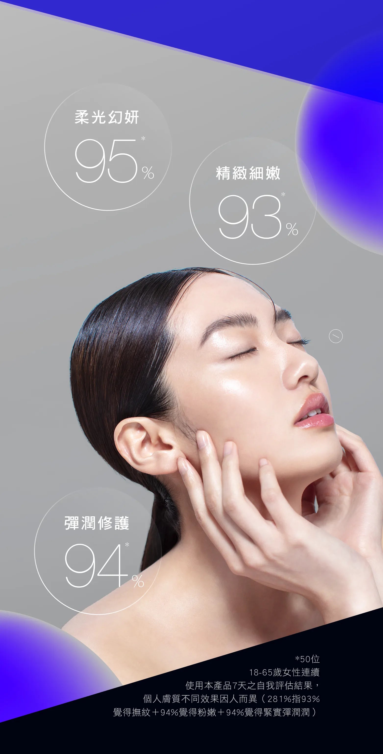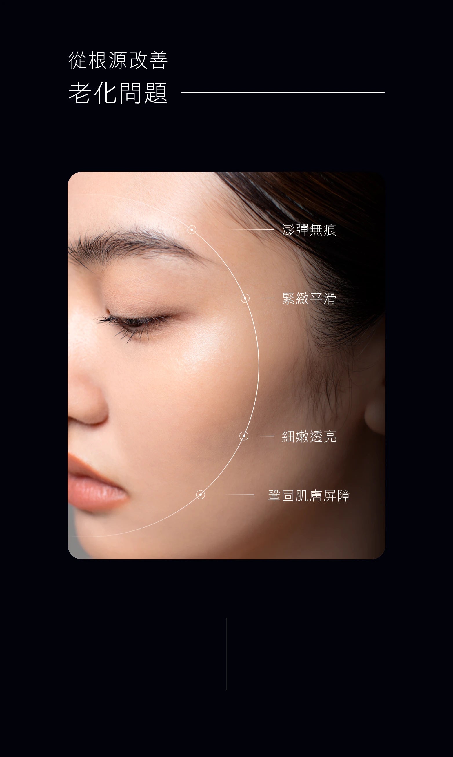 賦活肌膚精緻細嫩,鎖定老化源頭,撫平初老肌雜亂細紋,幫助光線完整折射,重現粉嫩新肌。