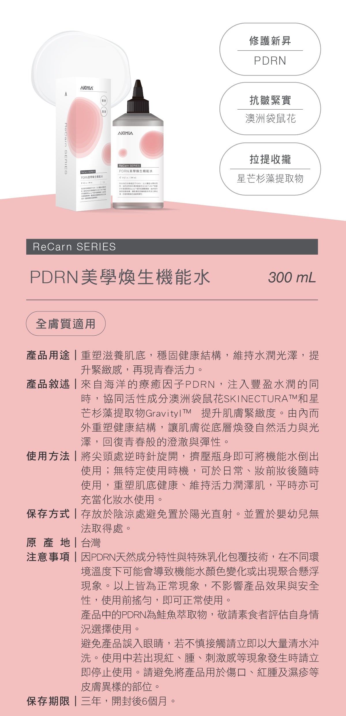 注意事項|因PDRN天然成分特性與特殊乳化包覆技術,在不同環境溫度下可能會導致機能水顏色變化或出現聚合懸浮現象。以上皆為正常現象,不影響產品效果與安全性,使用前搖勻,即可正常使用。