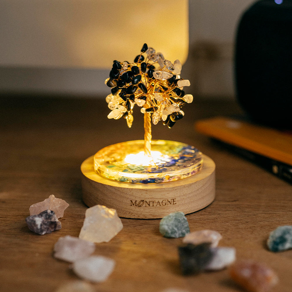 開運樹|白水晶。黑曜石