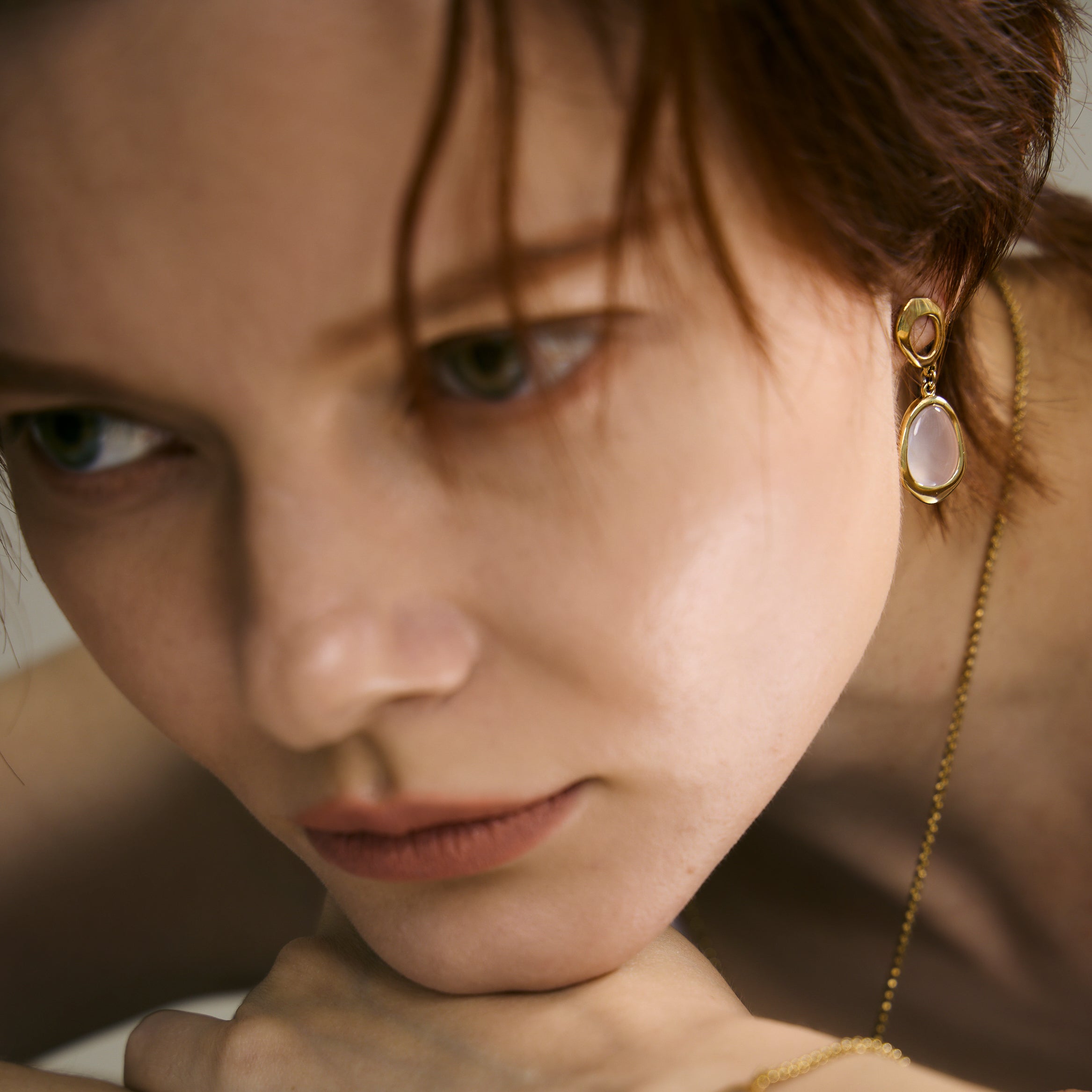 以 316L 不鏽鋼打造,抗敏且耐久,細膩線條襯托晶石的純粹光澤,讓飾品成為生活的靜謐陪伴。天然藍玉髓質地均勻、溫潤細膩,隱約泛出的冷藍色調,如同月光幽微而沉穩。幫助減少雜念、緩和思緒,並提升表達與溝通能力,創造和諧的人際關係。
