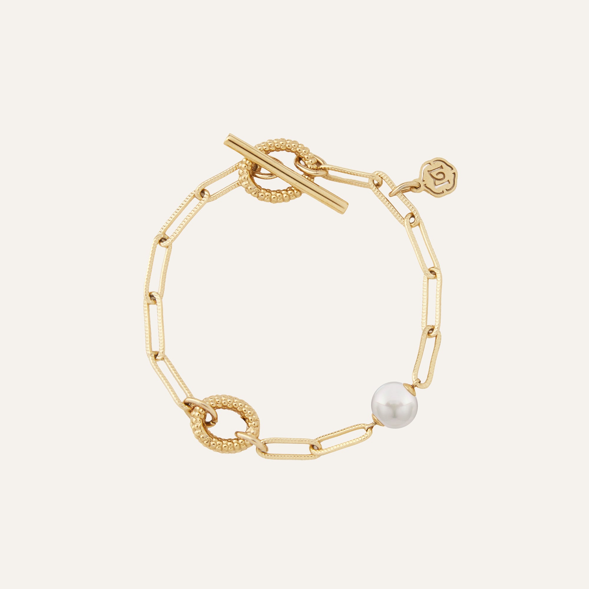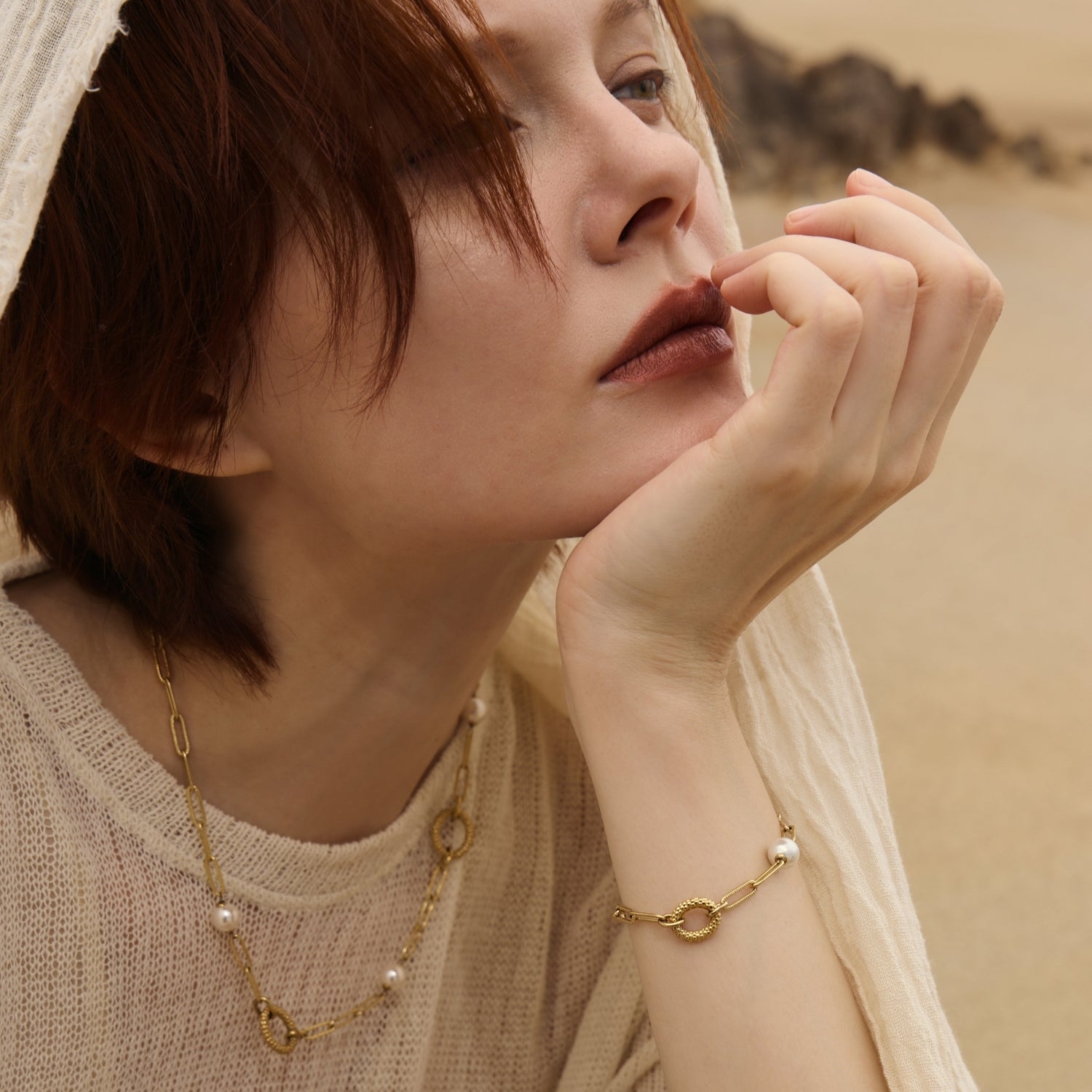 莓果圈環巧妙成為手鍊扣環,永續E珍珠於細緻鏈條上精巧排列,伴隨動作旋轉,展現獨特節奏與韻律感。