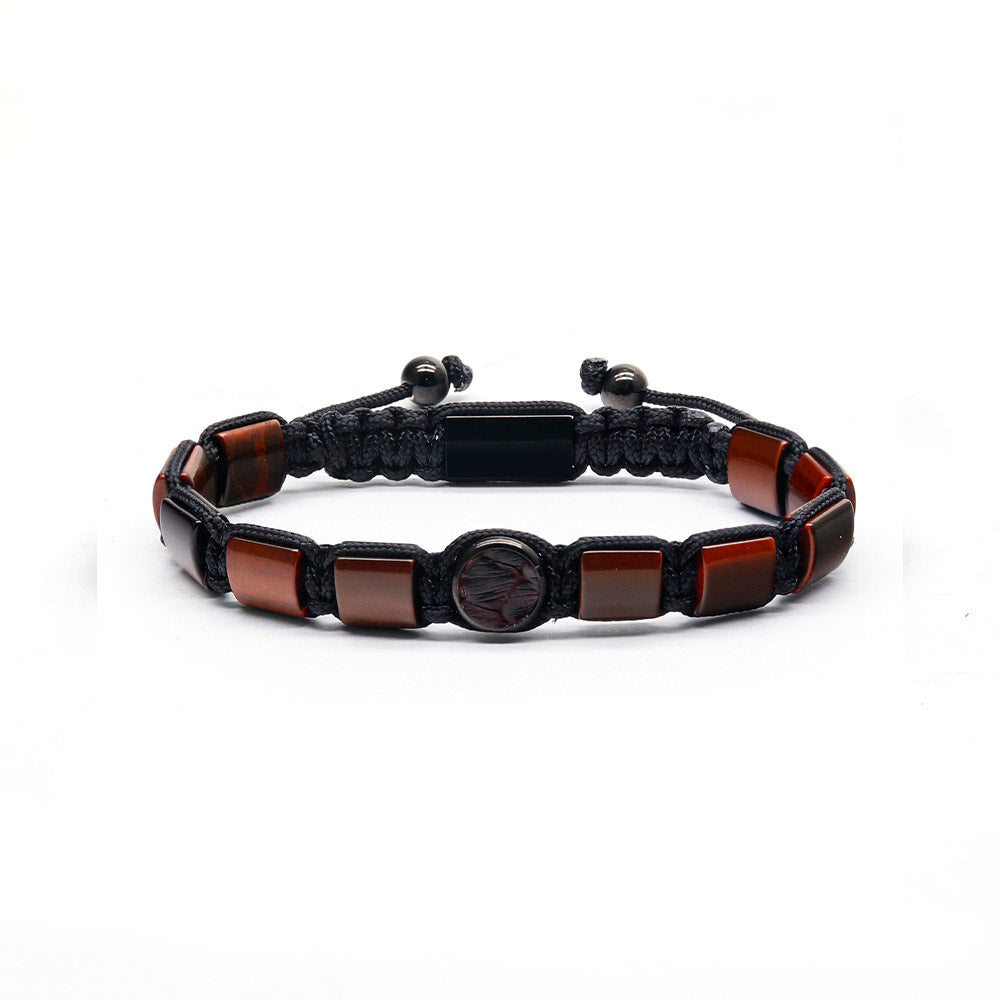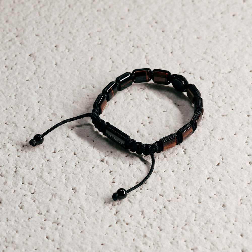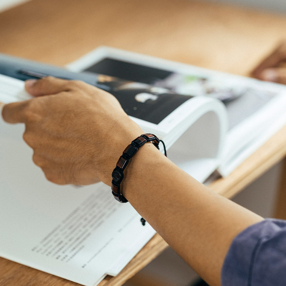 這款使用的紅虎眼是偏紅棕色的,紅棕色與黑色編織出的紅熾手鍊,