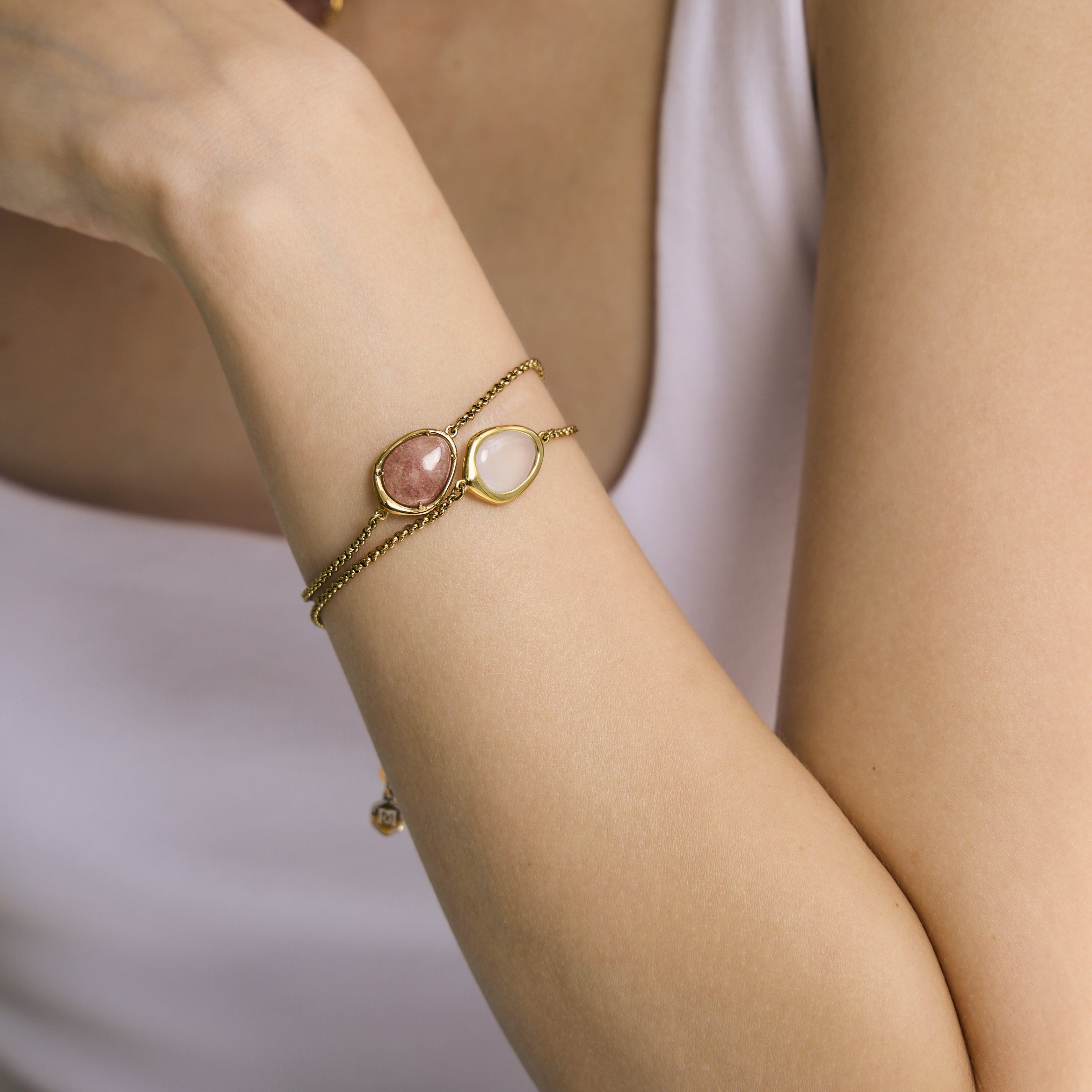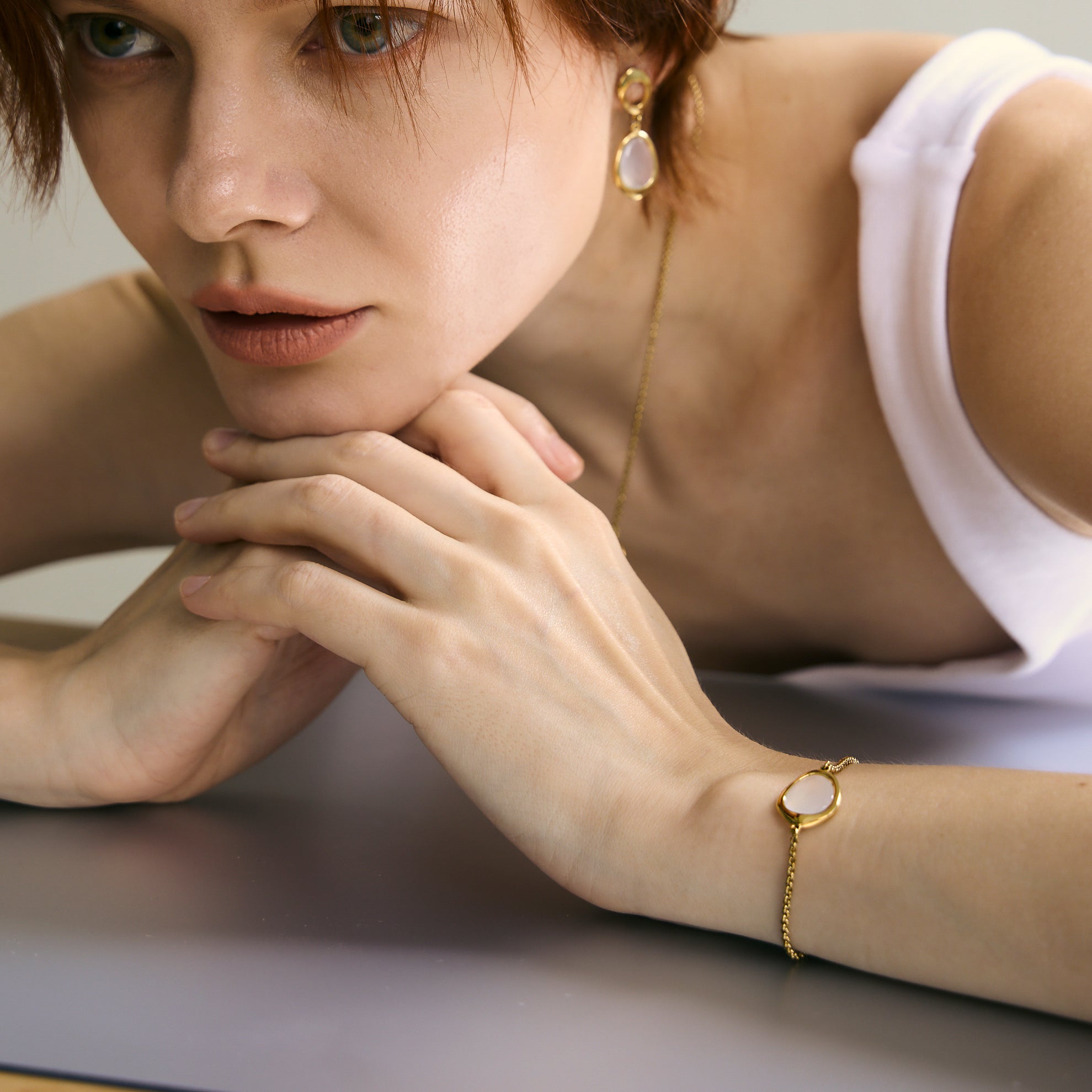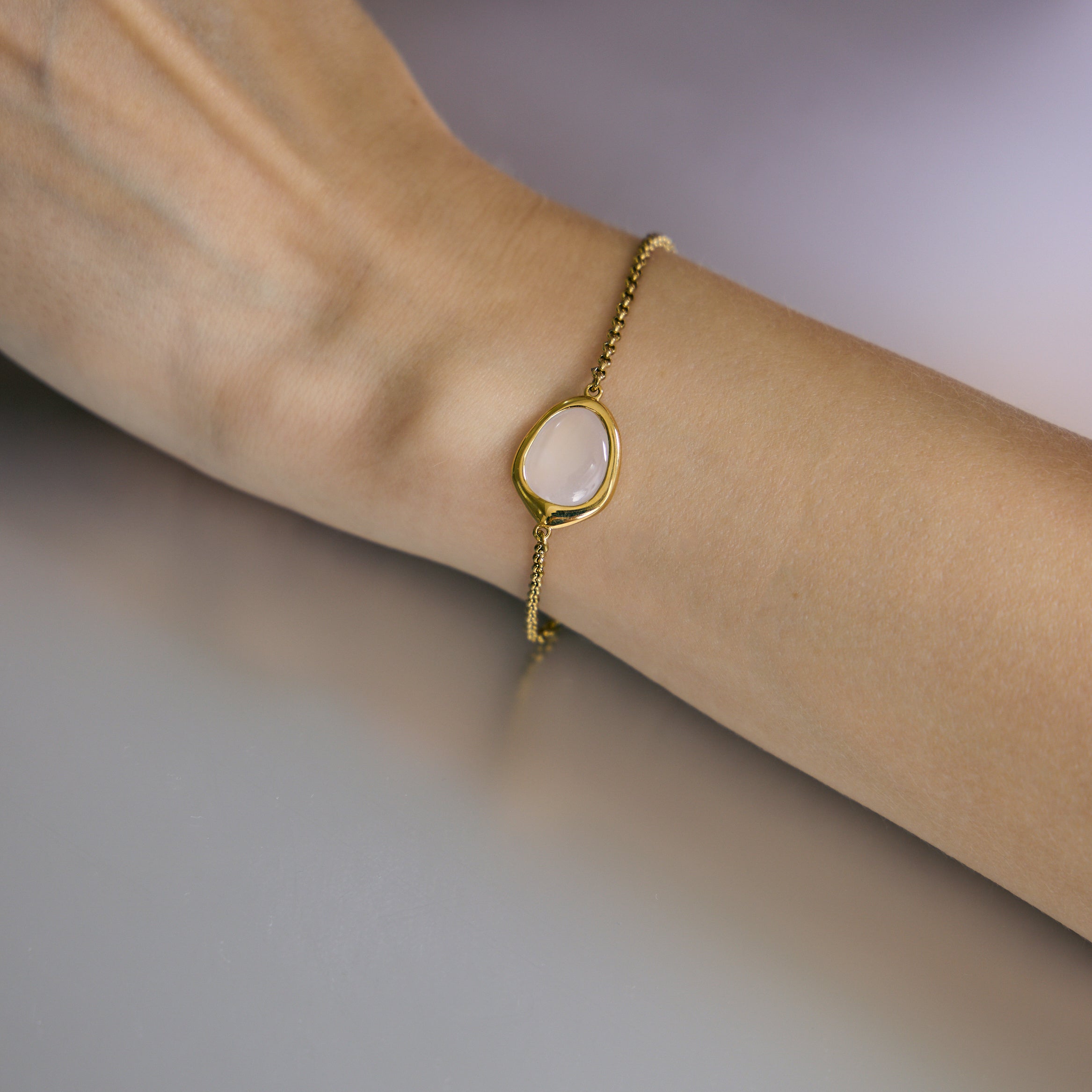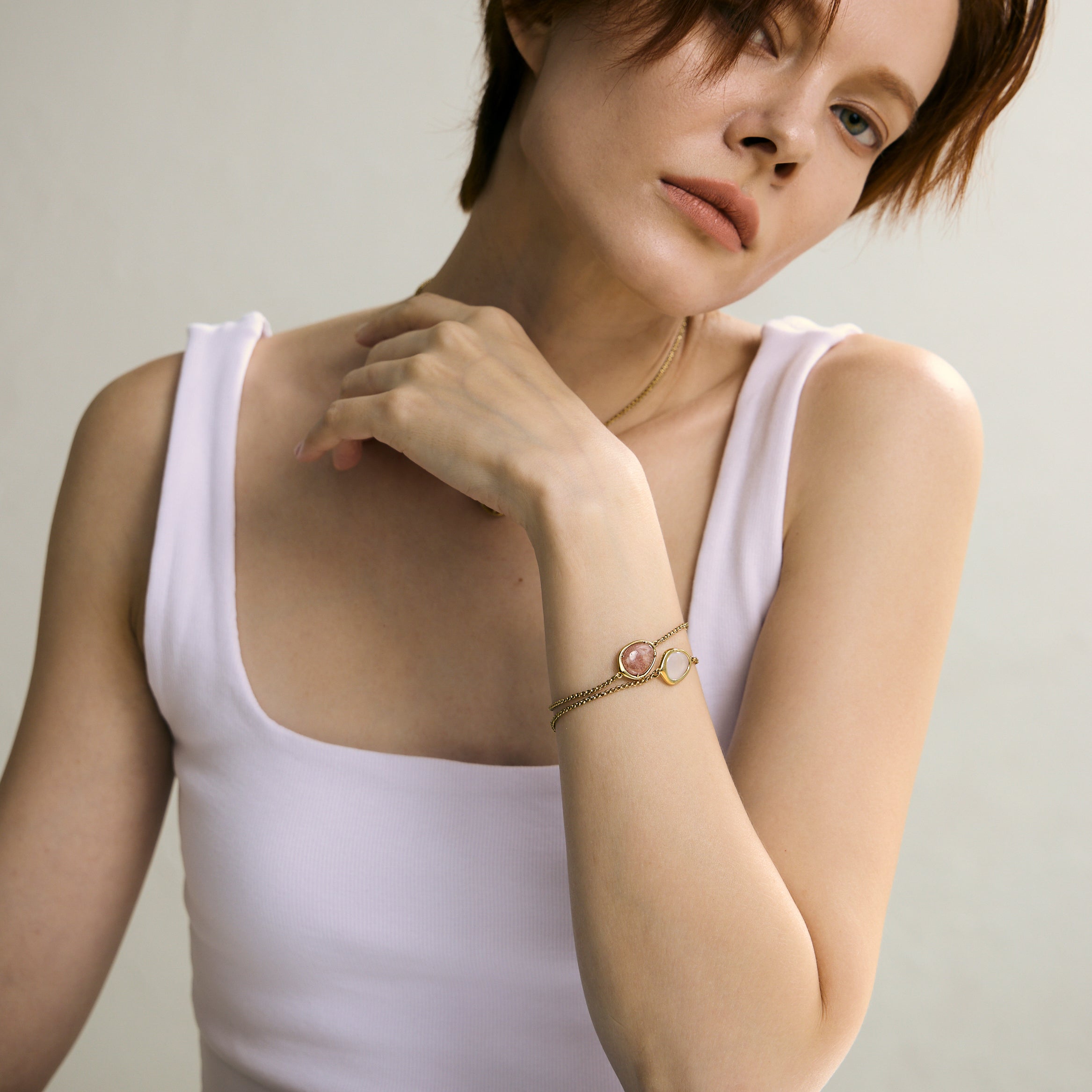 以 316L 不鏽鋼打造,抗敏且耐久,細膩線條襯托晶石的純粹光澤,讓飾品成為生活的靜謐陪伴。天然藍玉髓質地均勻、溫潤細膩,隱約泛出的冷藍色調,如同月光幽微而沉穩。幫助減少雜念、緩和思緒,並提升表達與溝通能力,創造和諧的人際關係。