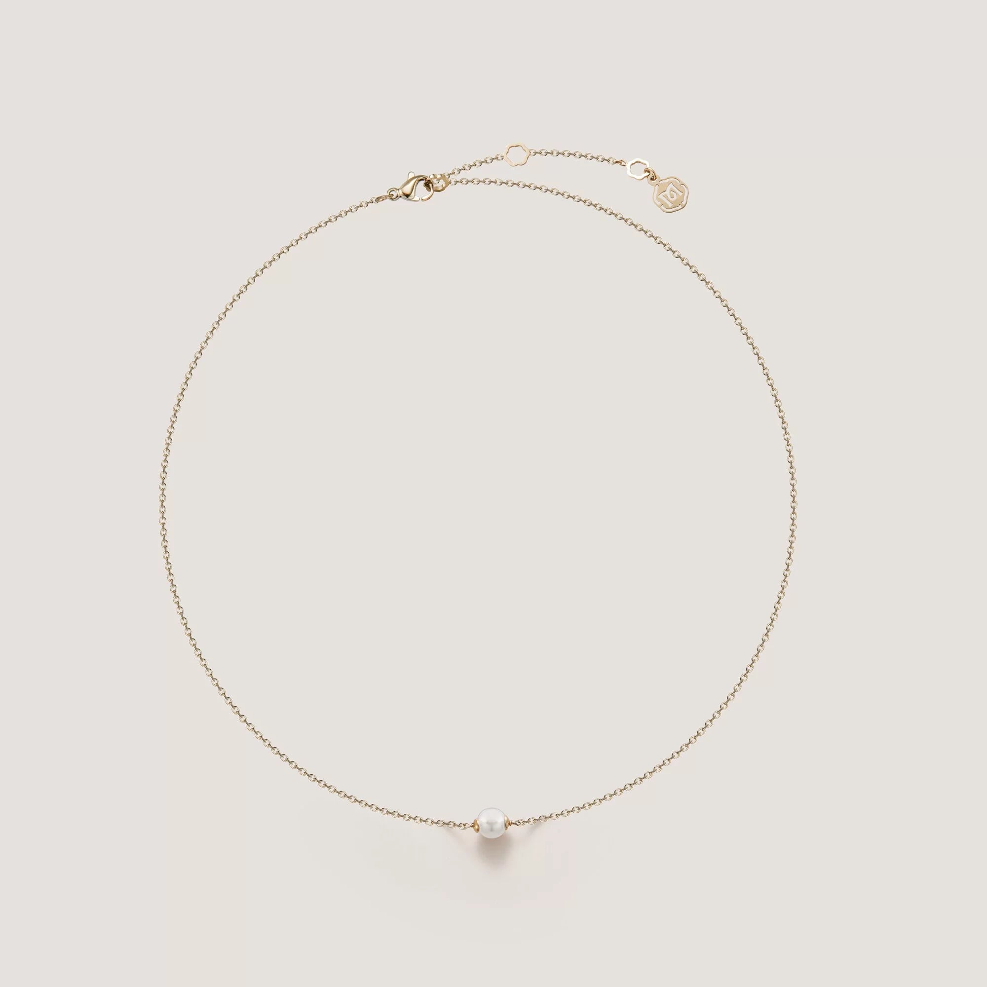 經典單珠吊墜,展現珍珠獨立之美,搭配兩側品牌銘刻。