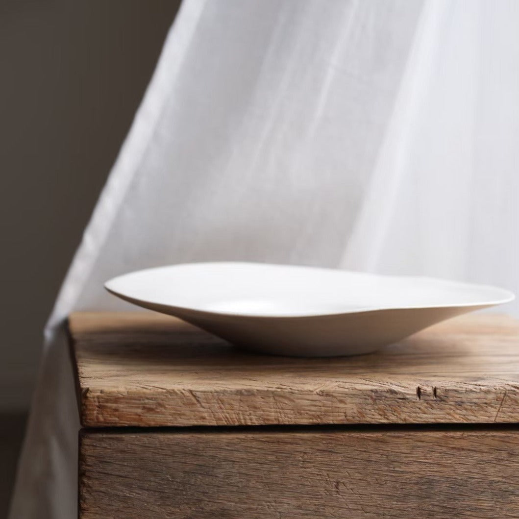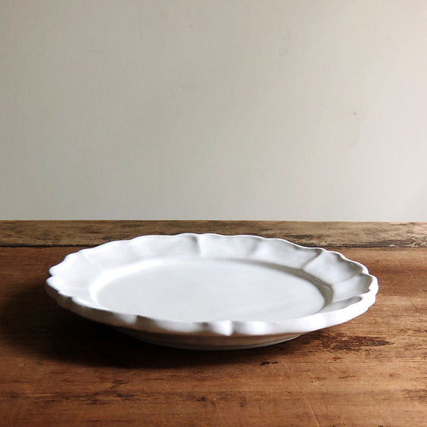 安部太一 白釉花邊圓形平盤 小