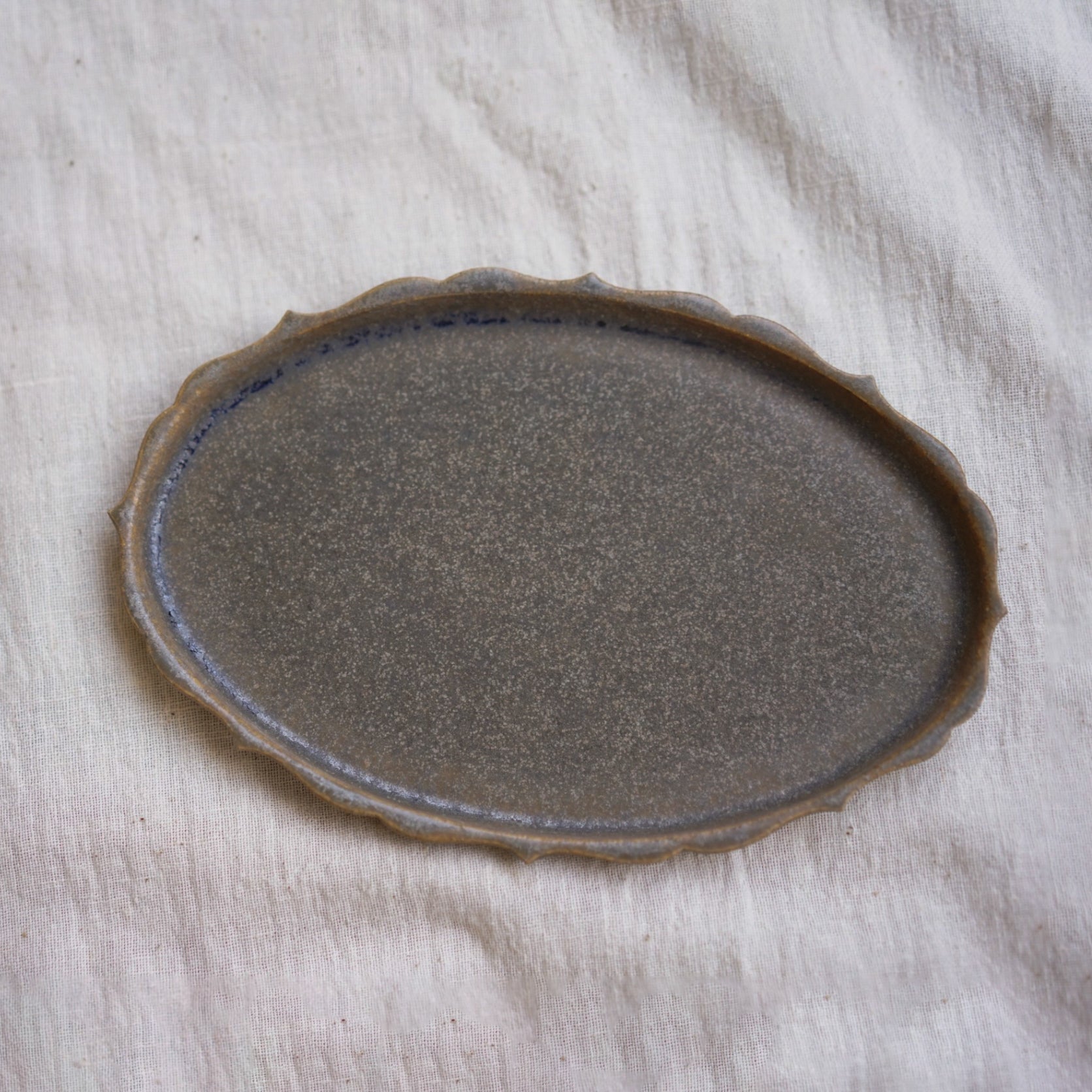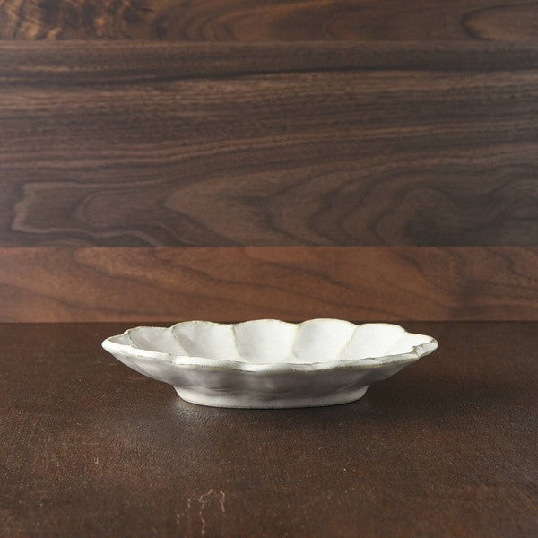 暮縞 花邊橢圓盤 淺灰白色