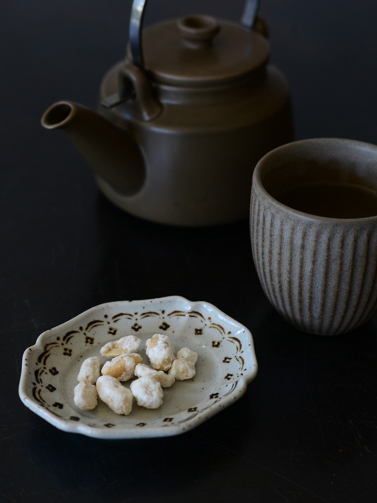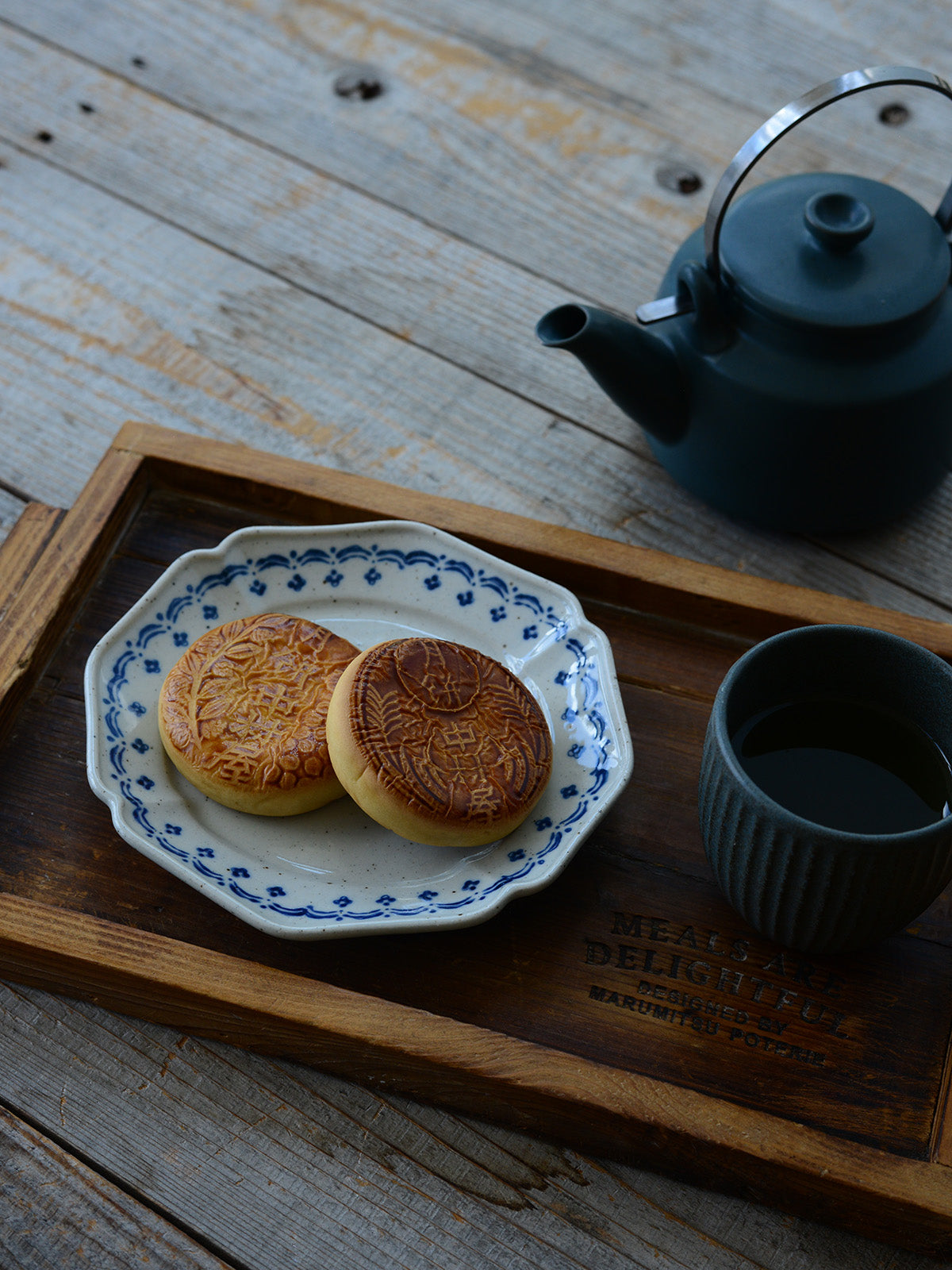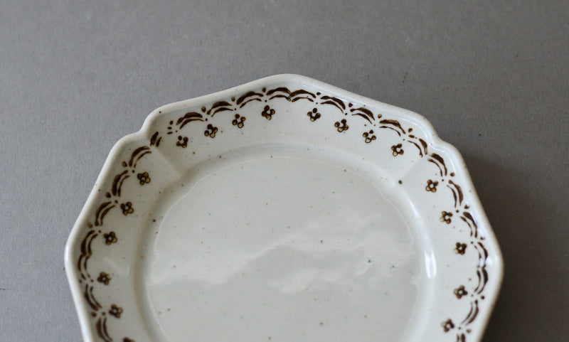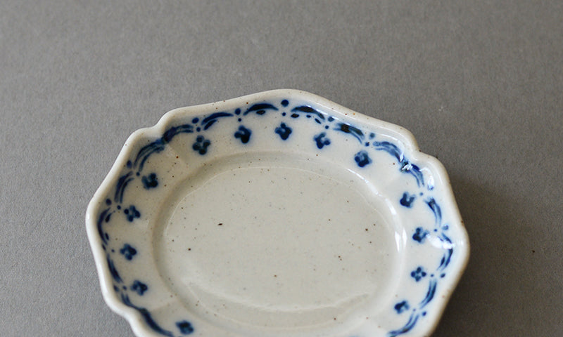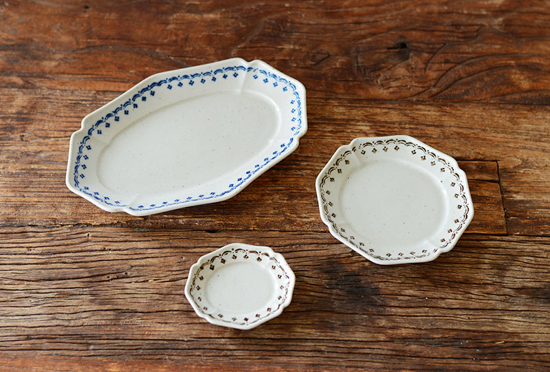 這系列透過藍色與茶色的樸素小花紋樣,為盤皿增添了不少魅力。